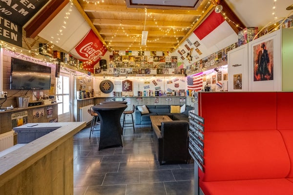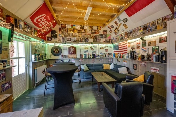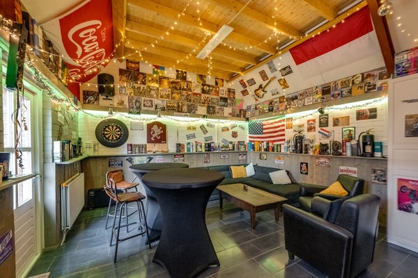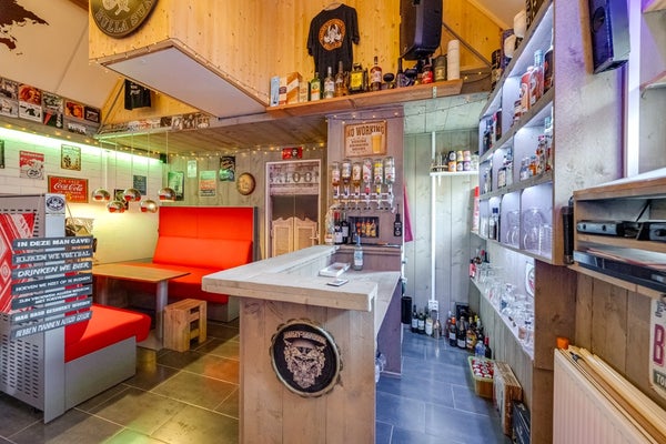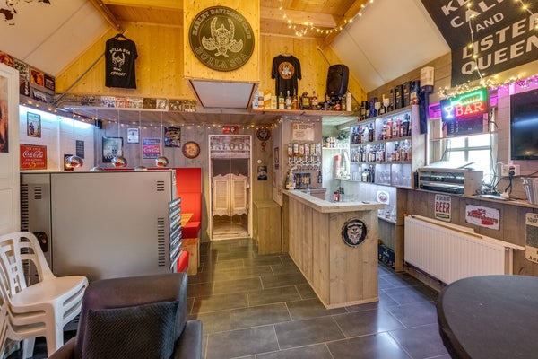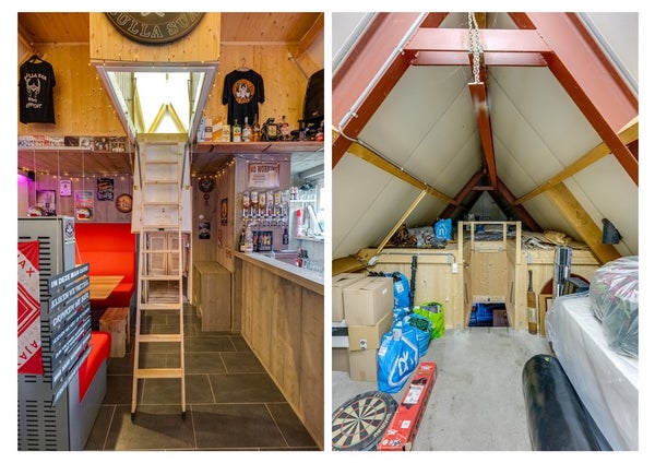 Het achterste gedeelte (7,11 m. x 4,92 m.) is sfeervol ingericht met een bar en een SMEG-koelkast, en voorzien van verwarming. Een heerlijke plek voor gezellige avonden, maar ook uitstekend geschikt als kantoor, atelier of toekomstig gastenverblijf.