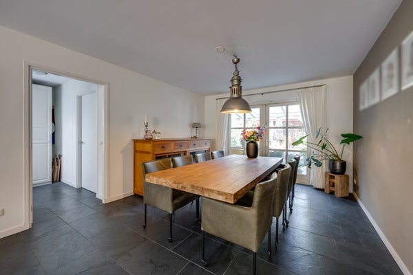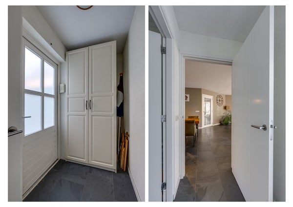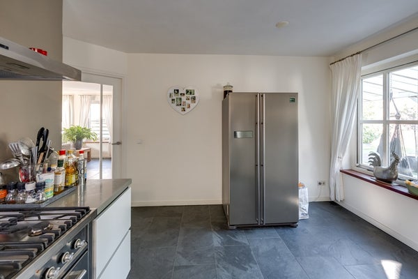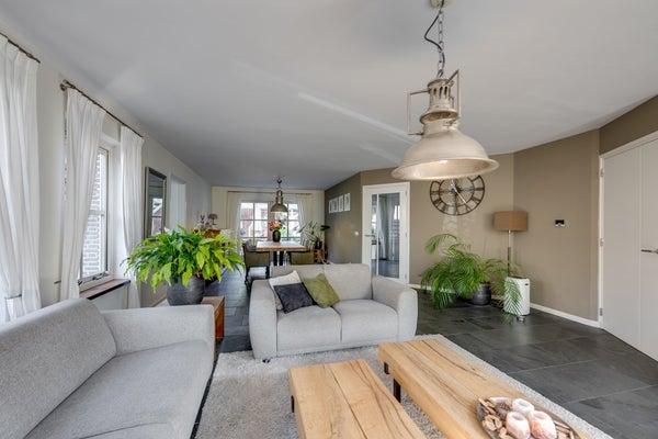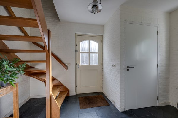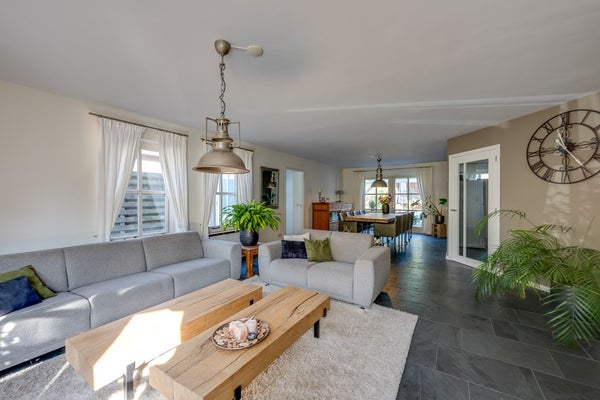 De strak afgewerkte wanden en plafonds geven de ruimte een moderne uitstraling, terwijl de stijlvolle binnendeuren en kozijnen met roedes het landelijke gevoel versterken. Vanuit de woonkamer bereikt u, via een kleine hal met eigen opgang, een extra (werk-/slaap-/speel)kamer – ideaal voor wie flexibel wil wonen of werken aan huis. Vanuit de woonkamer kunt u ook naar de keuken.