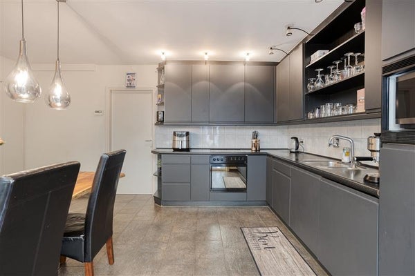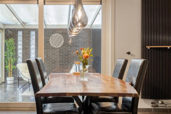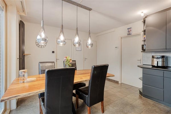 Grenzend aan de woonkamer vind je de dichte keuken in praktische L-opstelling. Met haar strakke lijnen, ruime werkblad én directe toegang tot de bijkeuken is ze hét hart van de woning, een plek waar je moeiteloos de lekkerste maaltijden bereidt. En vergeet niet de aangebouwde serre – een heerlijke ruimte om te ontspannen met uitzicht op je onderhoudsvrije tuin. Denk aan lange zomerse avonden met een glas wijn, terwijl de zon langzaam achter de horizon zakt.