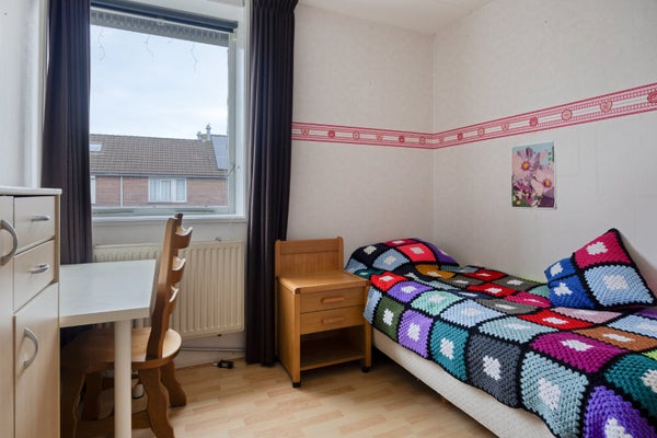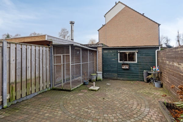 Op de eerste verdieping zijn drie slaapkamers en een functionele badkamer. Een vaste trap leidt naar de tweede verdieping, waar een vierde slaapkamer, cv-installatie en bergruimte onder de knieschotten zijn. Buiten zijn er een vrijstaande houten schuur en stenen berging voor fietsen en tuinspullen. De woning ligt nabij scholen, winkels, en heeft goede verbindingen naar Kampen en Zwolle.