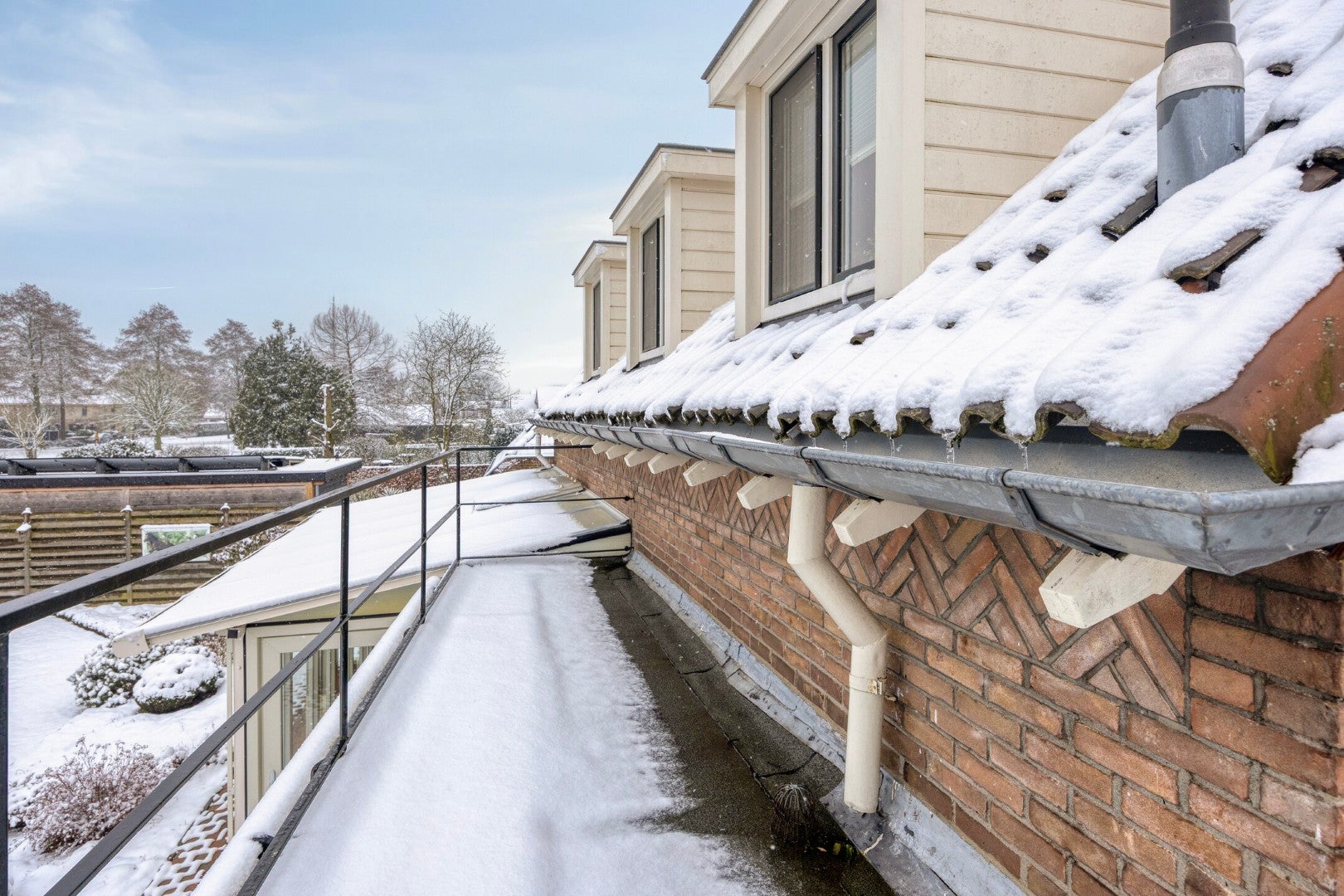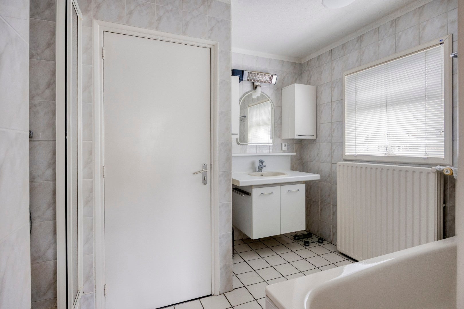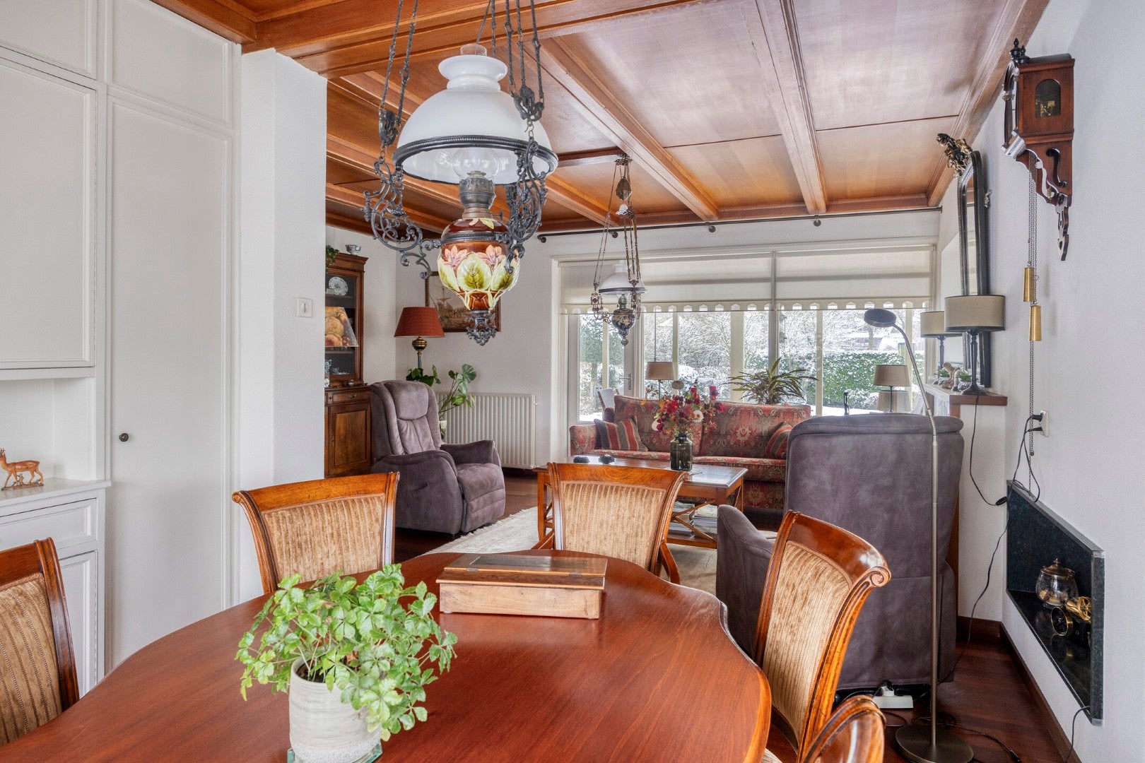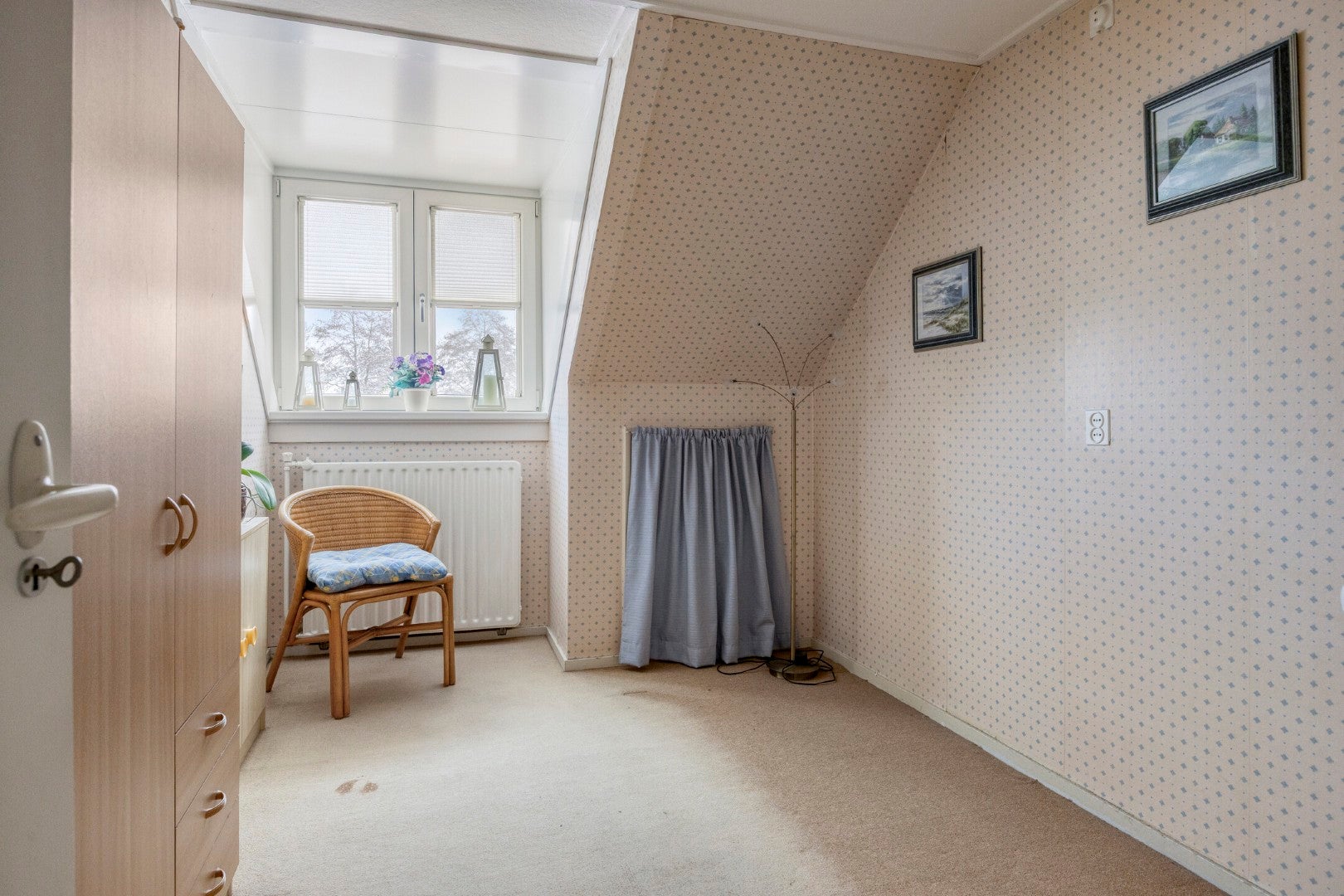 De verdieping herbergt drie slaapkamers, met kunststof dakkapellen voor extra lichtinval. De gescheiden keuken is voorzien van inbouwapparatuur, en een bijkeuken biedt extra ruimte voor een wasmachine. Vanuit de centrale hal is er toegang tot een kelder en de garage.