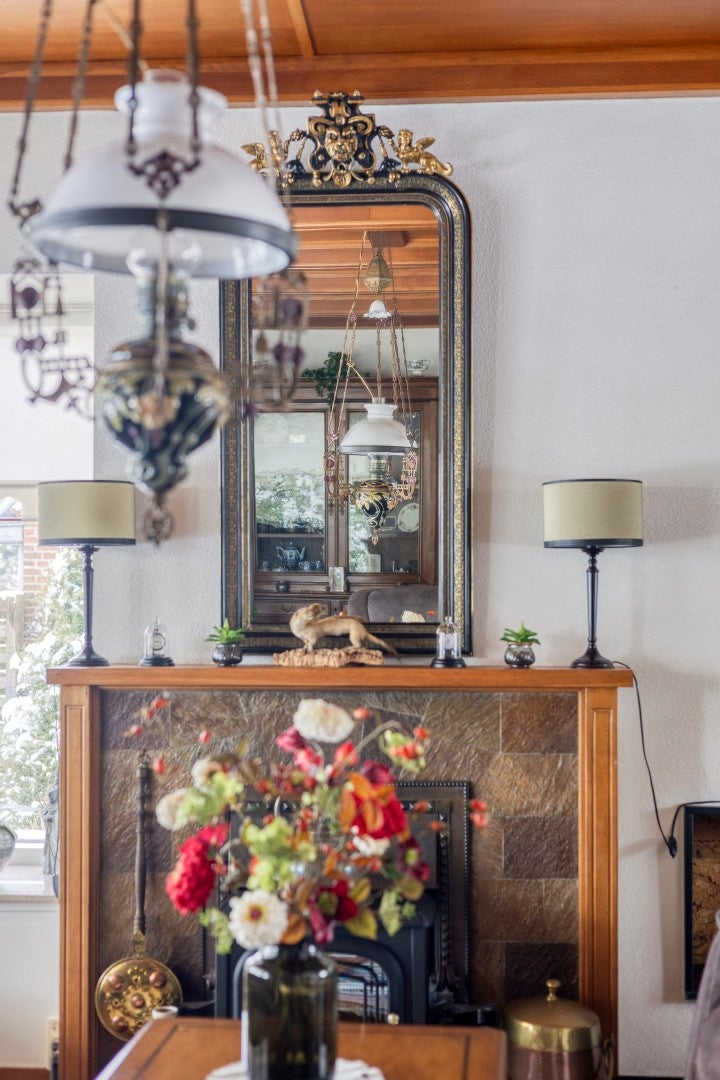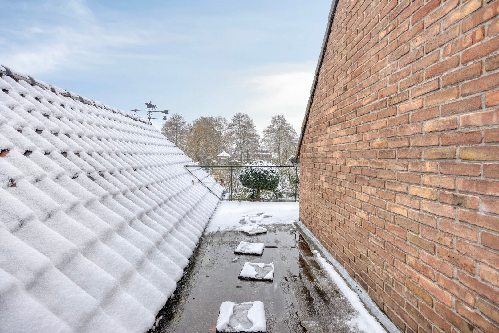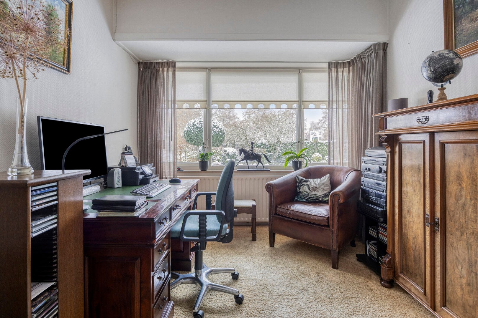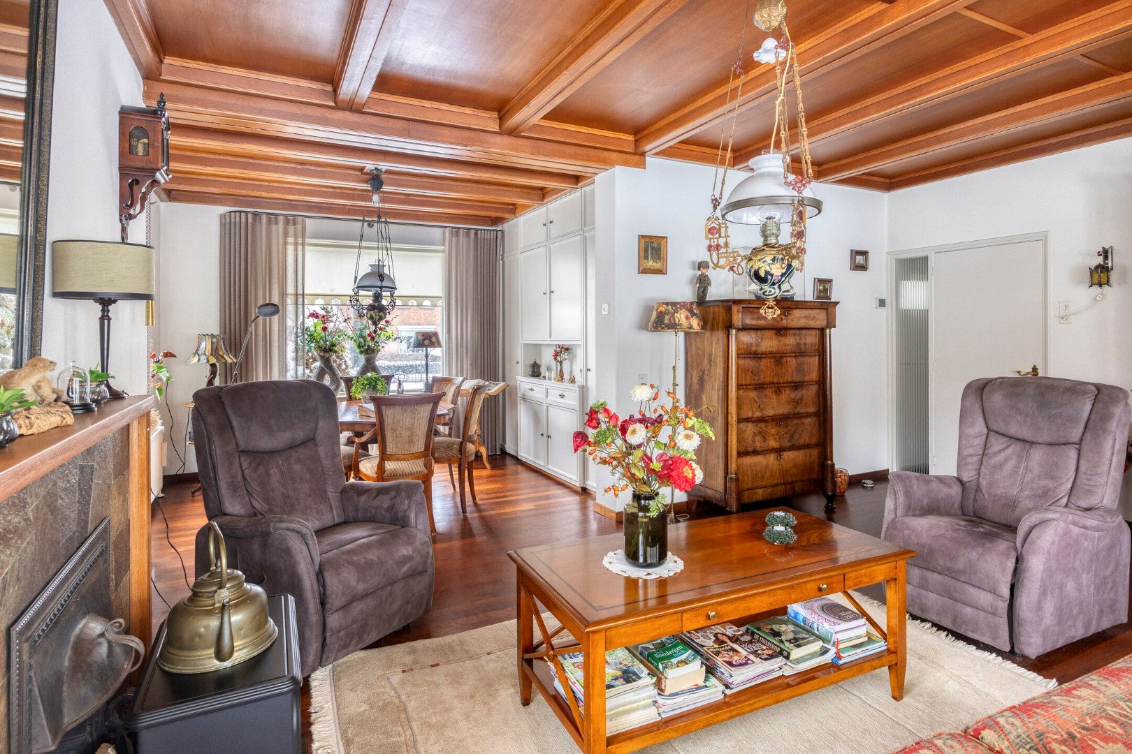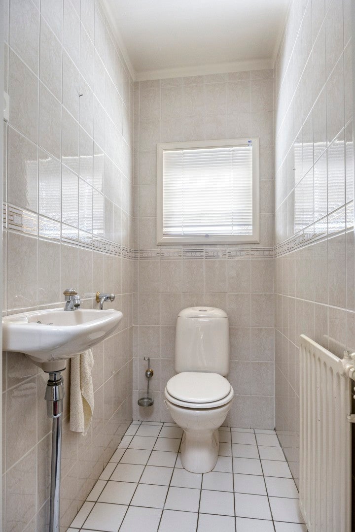 De verdieping herbergt drie slaapkamers, met kunststof dakkapellen voor extra lichtinval. De gescheiden keuken is voorzien van inbouwapparatuur, en een bijkeuken biedt extra ruimte voor een wasmachine. Vanuit de centrale hal is er toegang tot een kelder en de garage.