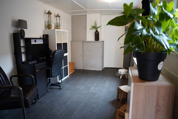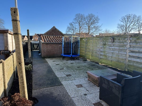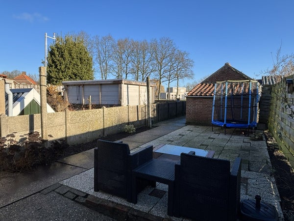 De ligging aan de achterzijde, grenzend aan volkstuintjes, geeft een vrij en groen gevoel. Een fijne plek om buiten te zitten, zonder veel onderhoud.
