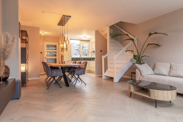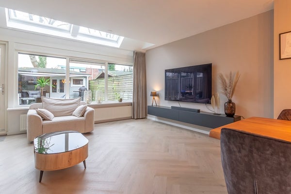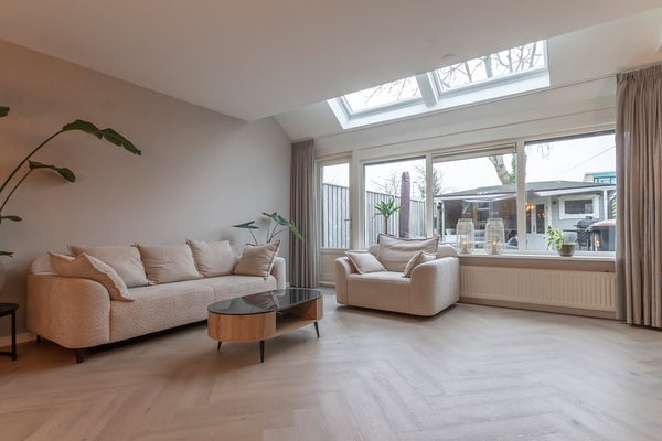 Dit sfeervolle en goed gelegen (gezins)huis heeft een prettige indeling en biedt veel comfort. De ruime, tuingerichte woonkamer is heerlijk licht dankzij extra geplaatste dakramen en staat in open verbinding met de keuken aan de voorzijde. De afwerking op de begane grond is keurig, met onder andere stucwerk en een PVC-visgraatvloer.