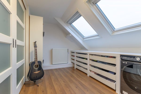 Op de eerste verdieping bevinden zich twee volwaardige slaapkamers en een mooie badkamer. De tweede verdieping beschikt over een voorzolder, ingericht als kleedruimte met aansluitingen voor witgoed en de cv-ketel, en een derde volwaardige slaapkamer met dakkapel.
