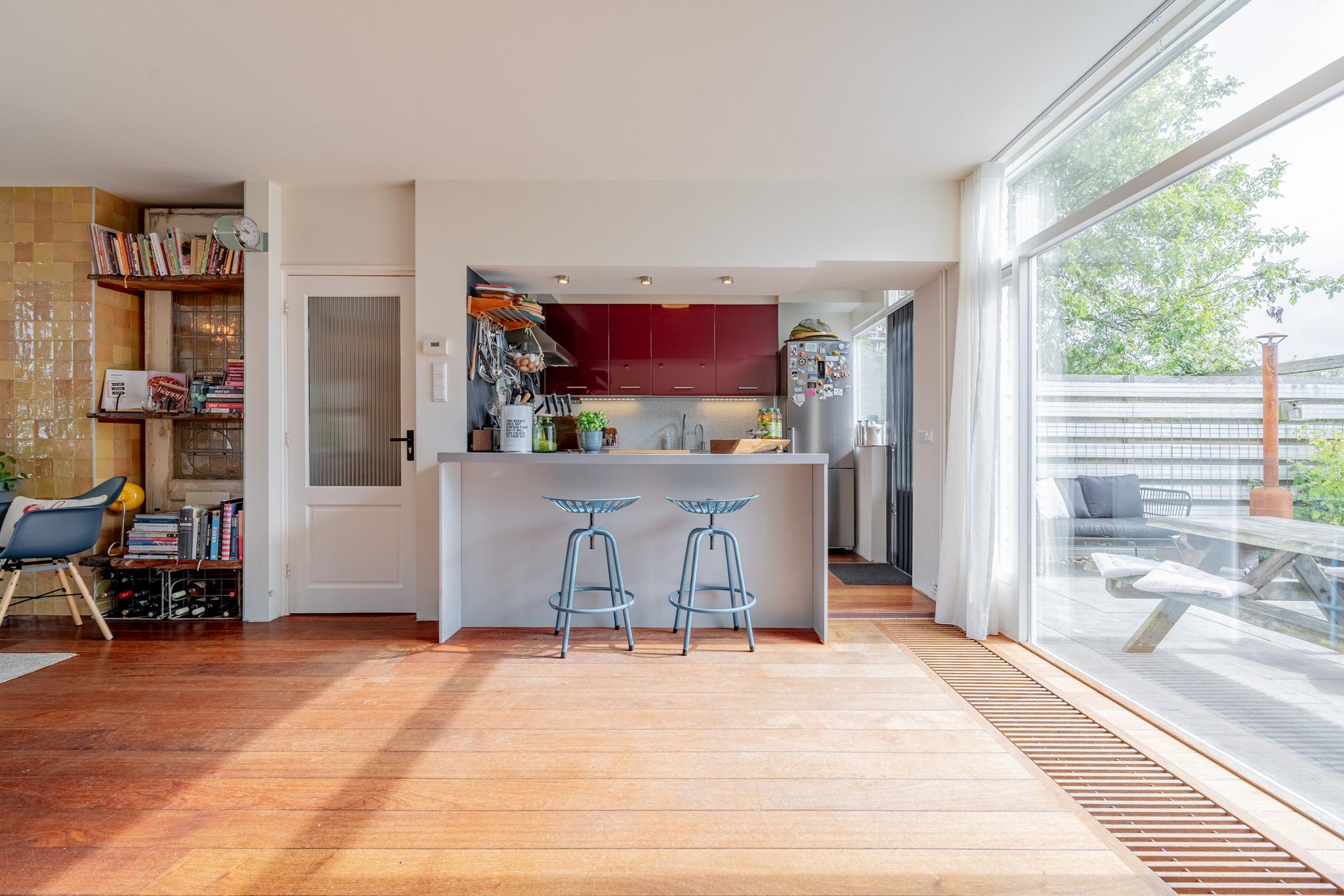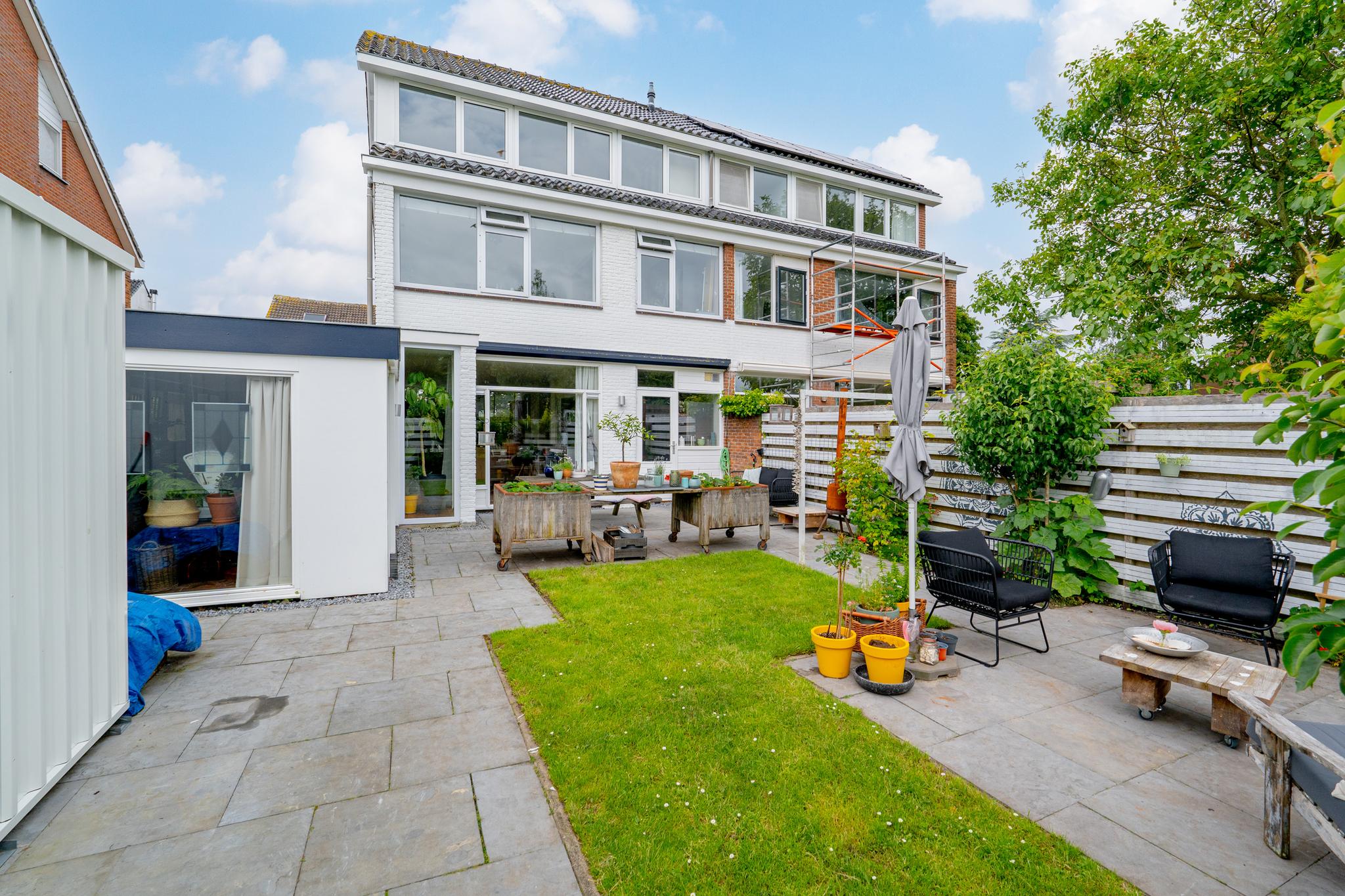 Deze goed onderhouden 2-onder-1 kapwoning, gelegen op het kindvriendelijke Kaageiland, biedt een sfeervolle woonkamer met verschillende zithoeken en een open keuken. Met de mogelijkheid voor vier slaapkamers en twee moderne badkamers is dit een ruim huis voor gezinnen. De woning beschikt over een verzorgde voor- en achtertuin, een zonnig balkon op het westen, en biedt parkeergelegenheid voor twee auto's op eigen terrein. Kaageiland is ideaal voor watersportliefhebbers, met de Kagerplassen en jachthavens op loopafstand, en is 24/7 bereikbaar per pont. Scholen, supermarkten en openbaar vervoer zijn in de nabijheid. De centrale ligging biedt snelle verbindingen naar Amsterdam en Leiden.