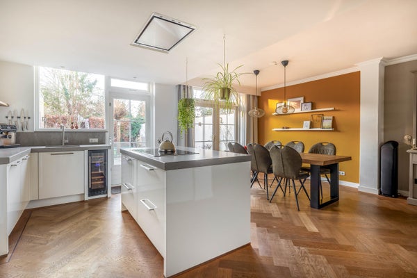 Dit ruime en gezellige twee-onder-een-kapwoning in een geliefde wijk biedt tal van mogelijkheden voor een gezin. Sinds 2017 hebben de huidige eigenaren de woning gerenoveerd, waaronder het strippen van de benedenverdieping en het uitbreiden van de eerste verdieping met een extra kleedkamer. De volledig vernieuwde keuken met kookeiland en de luxe multifunctionele bijkeuken maken het huis instapklaar. Met vier slaapkamers, een grote badkamer en een sfeervolle woonkamer met houtkachel, is er ruimte voor iedereen.
