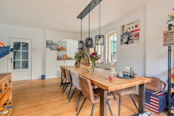 Deze royale twee-onder-een-kapwoning in de gewilde Prinsessenbuurt biedt een prachtig perceel van 625 m² en privacy. Gelegen aan een rustige straat met veel groen, heeft het een eigen oprit en een vrijstaande garage. De sfeervolle woonkamer met glas-in-lood ramen en de halfopen keuken met uitzicht op de tuin maken het een fijn thuis. De woning beschikt over zes kamers, waaronder vier slaapkamers en een badkamer met dubbele wastafel, inloopdouche en ligbad. De tweede verdieping heeft een ruime zolderkamer die eenvoudig te verdelen is. De verzorgde achtertuin, op het zuidoosten, is ideaal voor zomerse dagen en heeft een aantrekkelijke overkapping met elektra en water. Daarnaast is het nabij het Nationaal Park en zijn de uitvalswegen goed bereikbaar.