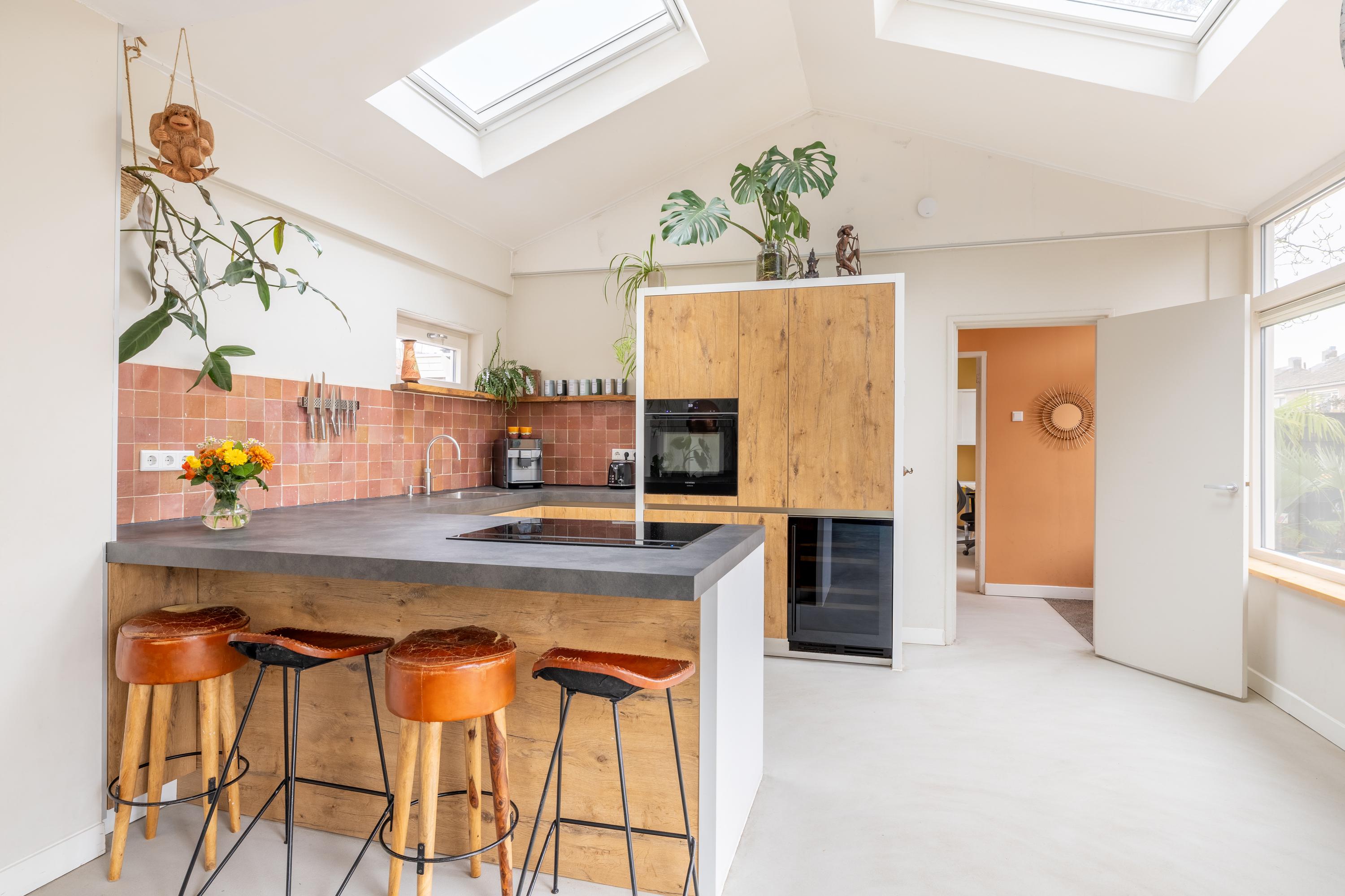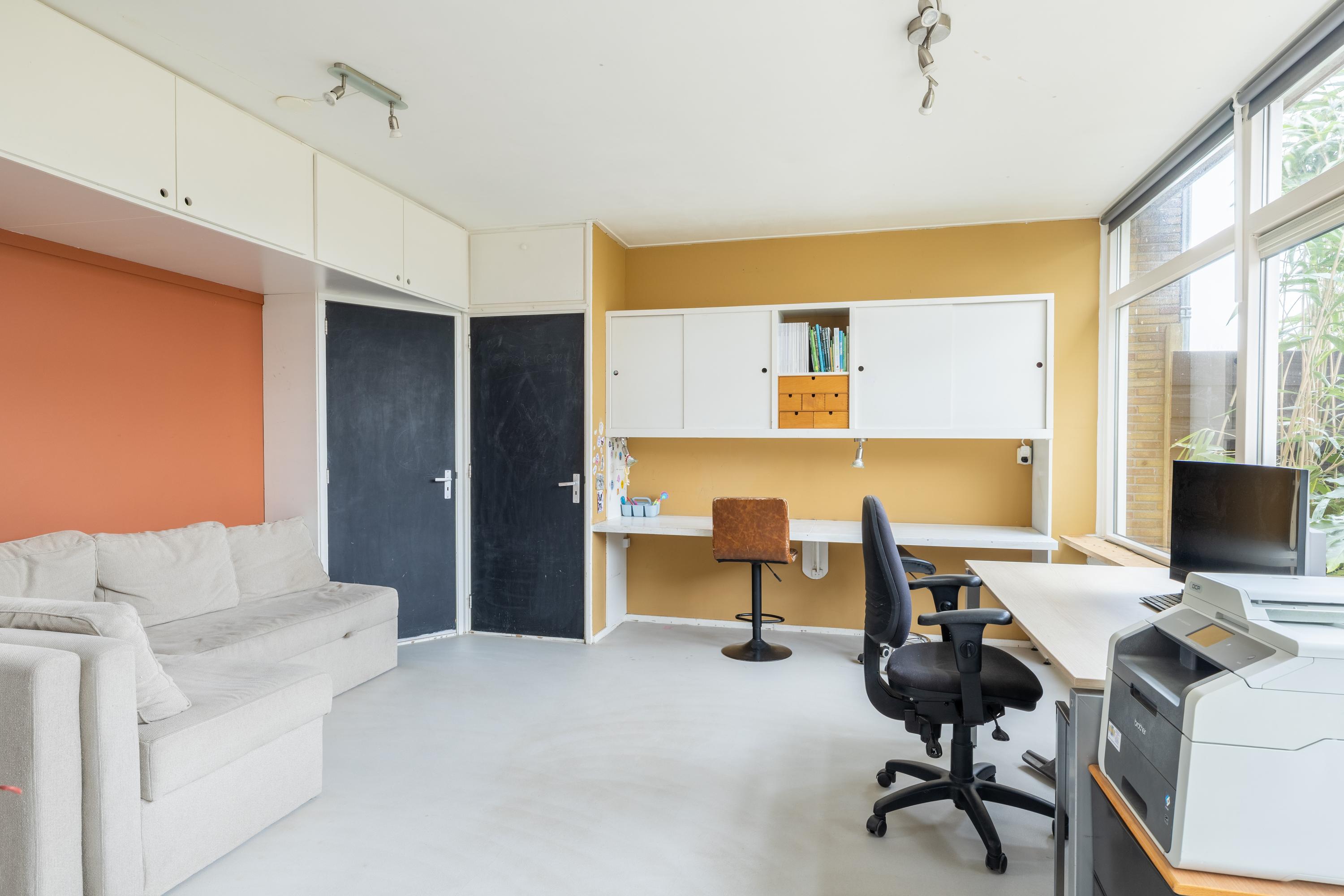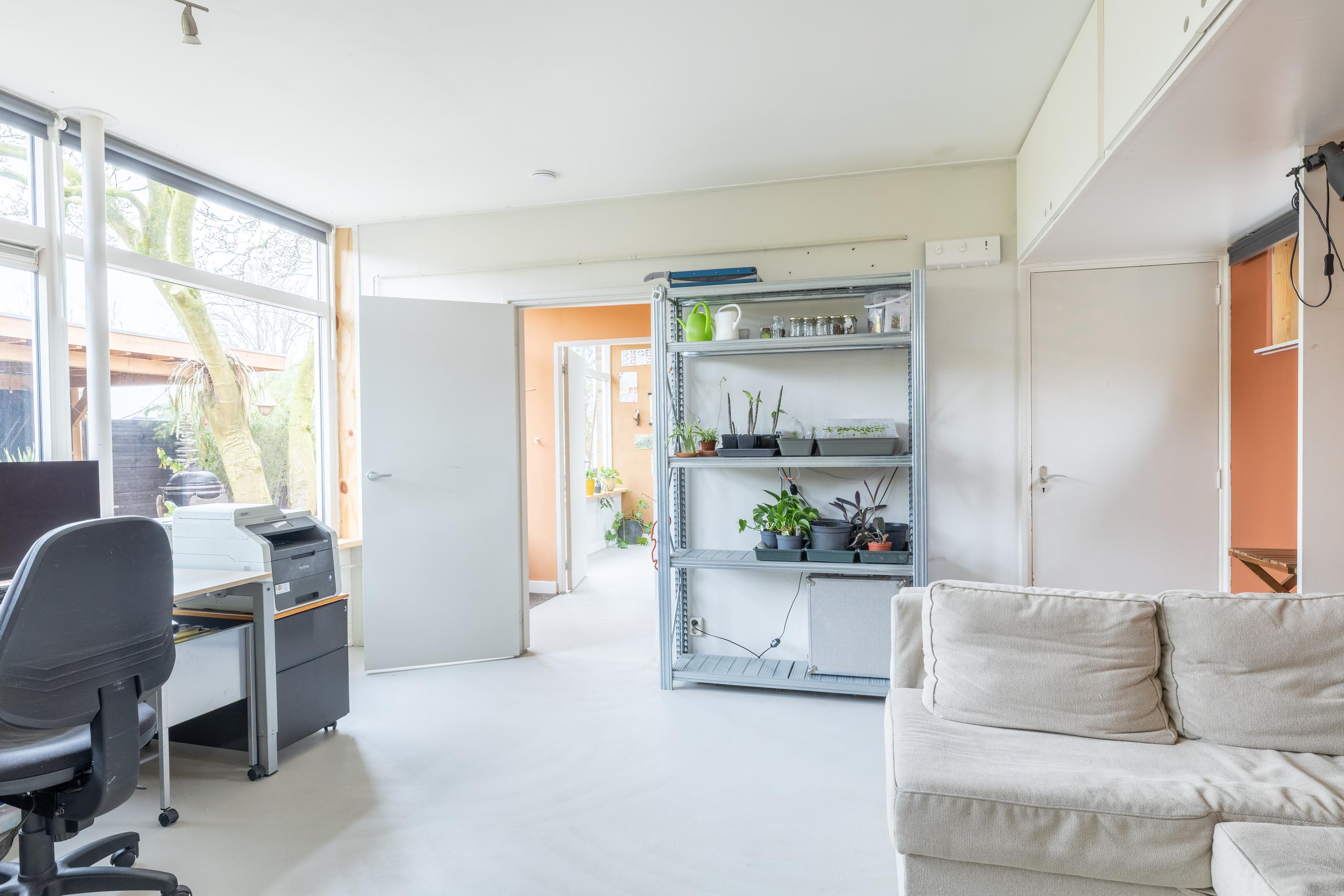 Deze fraai verbouwde en verrassend ruime 2/1 kapwoning ligt op een mooie hoeklocatie in de Flevowijk, dichtbij basisscholen en Winkelcentrum West. De woning beschikt over een lichte woonkamer van ongeveer 31 m² met een gietvloer en vloerverwarming, en een moderne open keuken uit 2023 met inbouwapparatuur. Op de begane grond is er een aparte werkkamer van circa 23 m² met eigen ingang. De eerste verdieping heeft drie royale slaapkamers en een nette badkamer uit 2014. De tweede verdieping bevat nog eens twee slaapkamers en een vliering. De zijtuin, gunstig gelegen op het zuidoosten, heeft een oppervlakte van ongeveer 180 m² en beschikt over een vrijstaande berging. De woning is goed geïsoleerd (energielabel B) en heeft zonnepanelen.