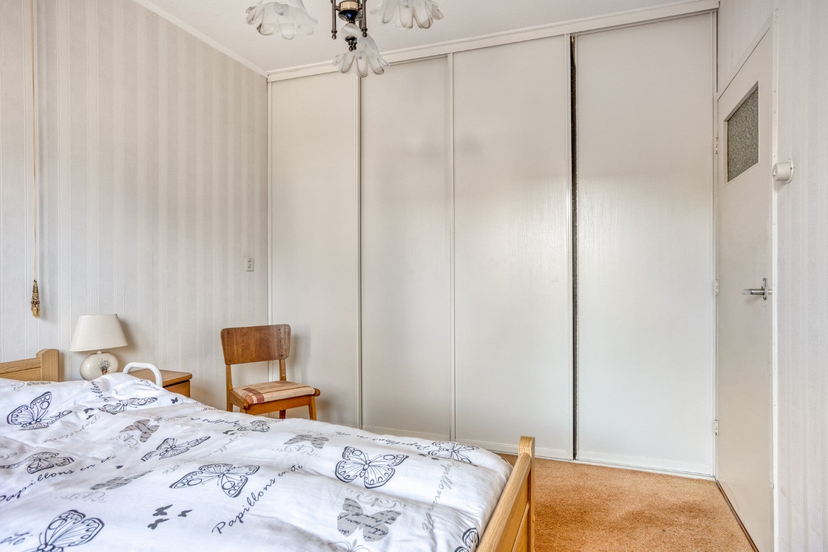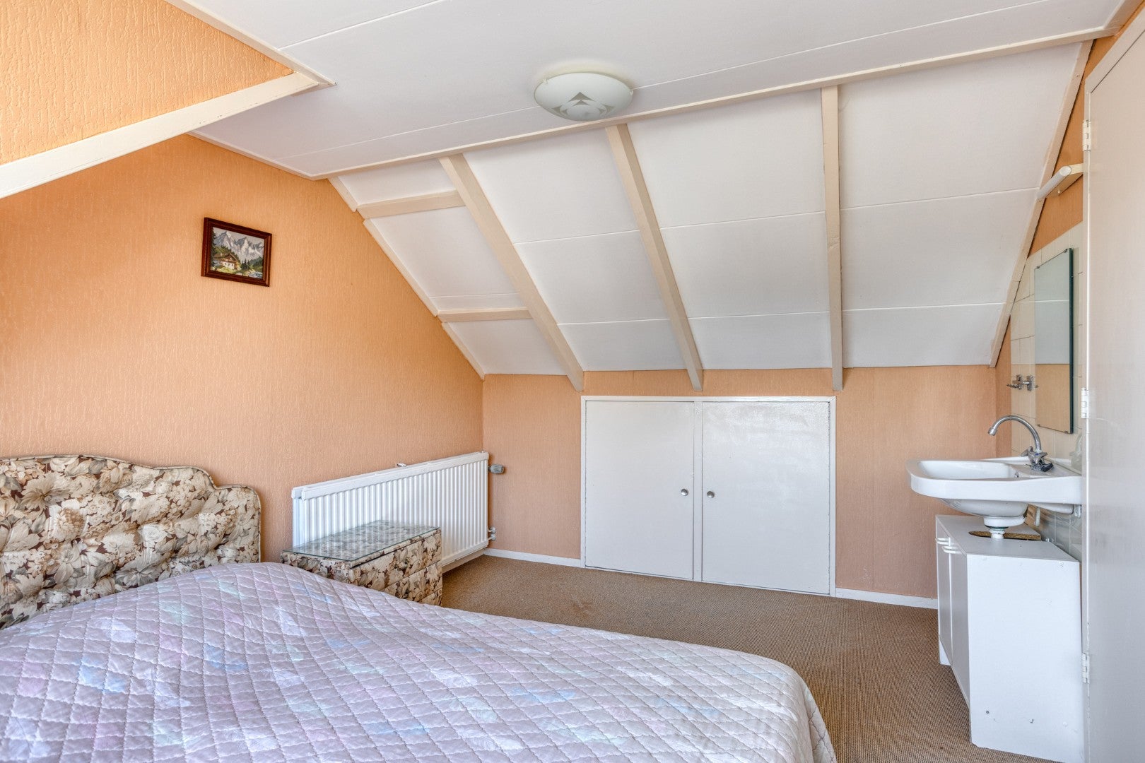 De begane grond heeft een lichte hal, een royale woonkamer met een zithoek bij de houtkachel, en een praktische hoekkeuken met toegang tot de achtertuin. De slaapkamer op deze verdieping is voorzien van een vaste kastenwand. Op de eerste verdieping zijn twee ruime slaapkamers met bergruimte. In de tuin zijn meerdere zitplekken gecreëerd en er is een aangebouwde garage.