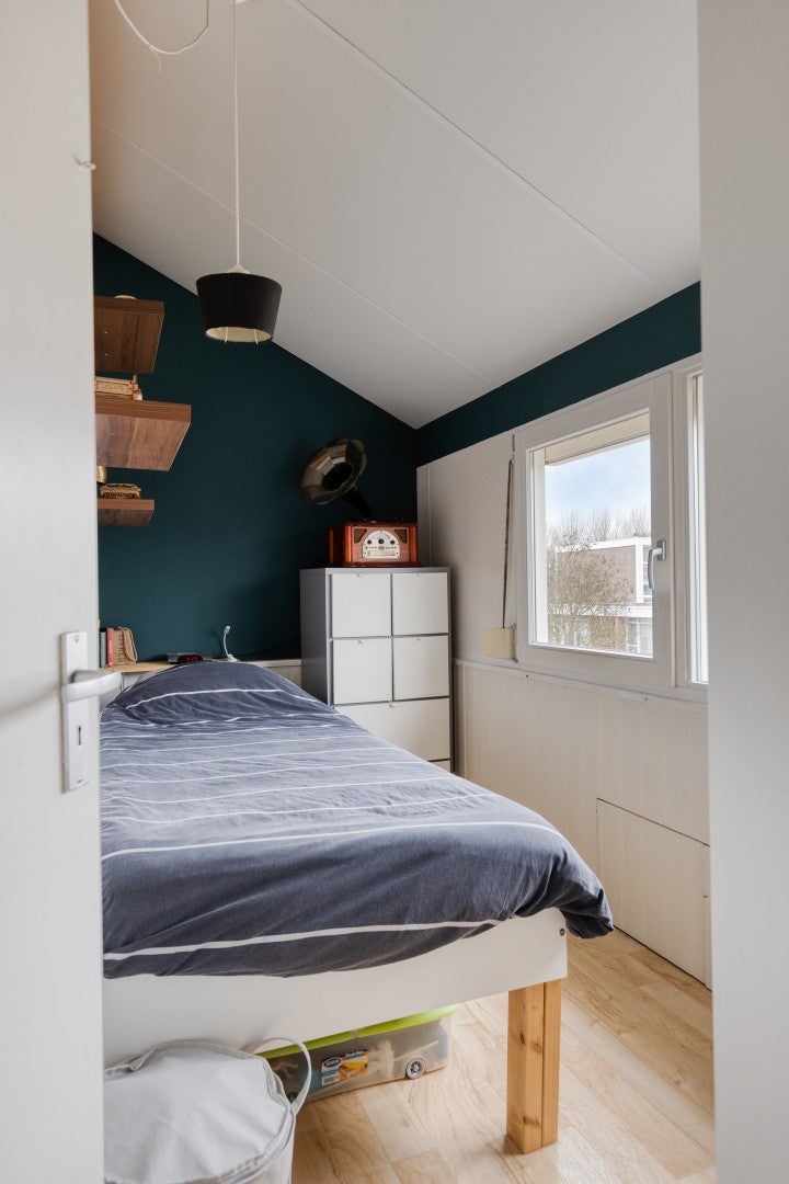 Deze ruime tussenwoning in de Flevowijk in Kampen heeft vijf slaapkamers en een volwaardige tweede verdieping, met een totaal woonoppervlakte van 111 m². De woning heeft een praktijkgerichte indeling met een uitgebouwde woonkamer die zorgt voor een royale zithoek en ruimte voor een grote eettafel. De open keuken biedt voldoende berg- en werkruimte en staat in verbinding met de bijkeuken die toegang geeft tot de achtertuin op het zuidoosten. Op de eerste verdieping zijn drie slaapkamers en een compleet uitgeruste badkamer. De tweede verdieping biedt nog eens twee slaapkamers, waarvan één met wastafel. Buiten vind je een onderhoudsvriendelijke tuin met een terras, een vrijstaande houten schuur met veranda, en een achterom. De locatie biedt diverse voorzieningen en goede verbindingen naar winkels en scholen.