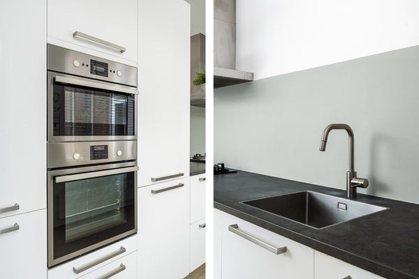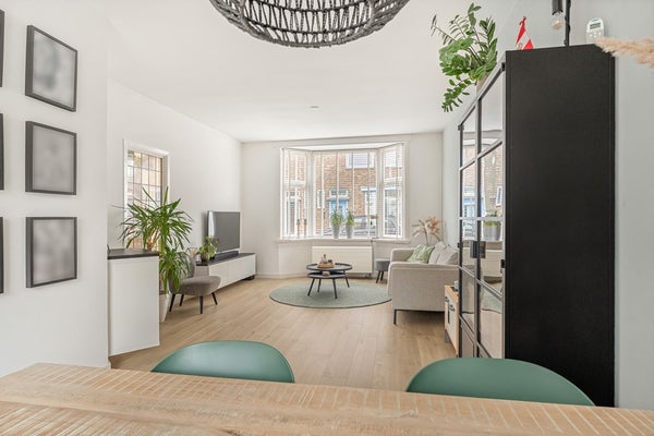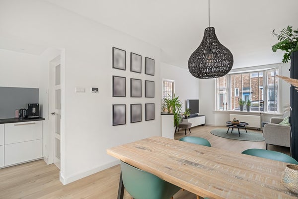 De lichte en zeer sfeervolle woonkamer is voorzien van hoge plafonds (ca. 2,75 m), een klassieke erker aan de voorzijde, openslaande deuren naar de tuin en heerlijk veel daglicht. In de uitbouw aan de achterzijde is de open keuken gesitueerd – modern en compleet ingericht met diverse inbouwapparatuur (o.a. vaatwasser, koelkast/vriezer, oven, afzuigkap). Via een achterdeur is ook vanuit de keuken de tuin bereikbaar.