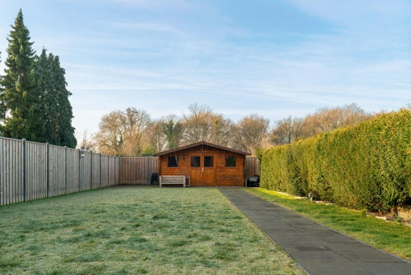 De tuin is geheel omsloten door deels nieuwe schuttingen (2023) en is een ruim tuinhuis aanwezig. ideaal voor het opbergen van tuingereedschap.