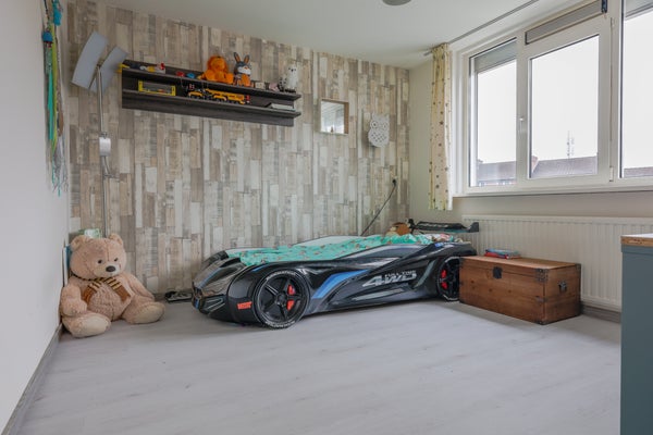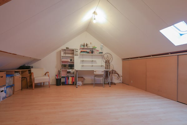 De zolder is voorzien van laminaatvloer en netjes afgewerkt met gipsplaten. Hier is gemakkelijk een vierde slaapkamer te realiseren.