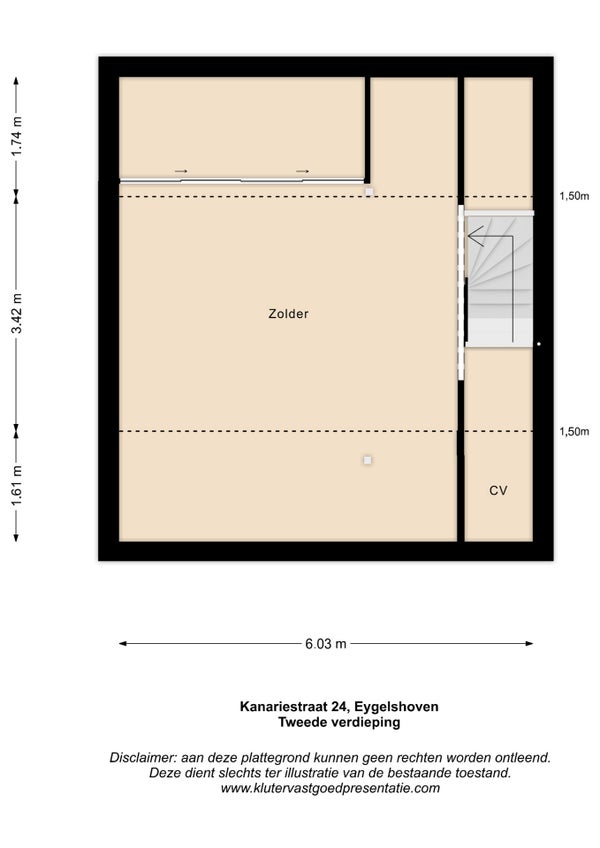 Zolderverdieping is bereikbaar middels een vaste trap. Hier staat ook het Nefit Cv-toestel ( 2014, eigendom) opgesteld.