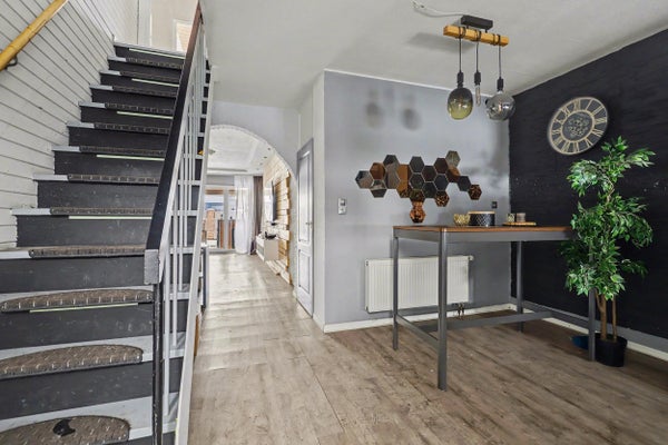 Op de eerste verdieping bevinden zich drie slaapkamers, een badkamer en een overloop.