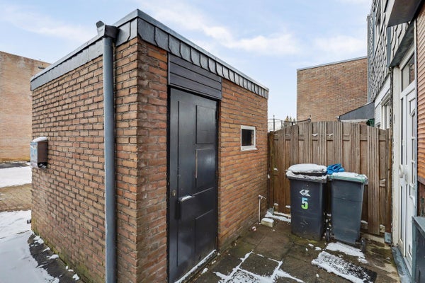 De vrijstaande externe berging is geschikt voor opslag of het stallen van fietsen.