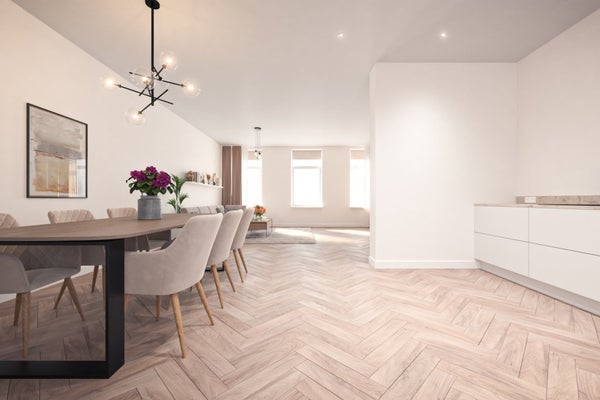 De entree leidt naar de eerste verdieping waar de lichte woonkamer prachtig aansluit op een stijlvolle, halfopen keuken met kookeiland. Deze verdieping omvat ook een slaapkamer en een ruime badkamer met inloopdouche en dubbele wastafel.