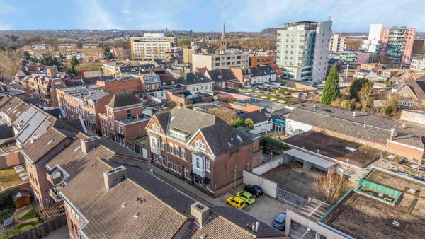 In het centrum van Kerkrade staat deze ruime en verzorgde hoekwoning. Het huis, gebouwd in circa 1958, heeft een perceeloppervlakte van 195 m² en een woonoppervlakte van 141 m², waardoor het ideaal is voor zowel bewoning als een bedrijf aan huis, zoals de huidige kapsalon. De woning omvat een kelder met bergruimte en een c.v.ketel, en de begane grond is voorzien van een royale salon en een keuken met toegang tot een achtertuin van 60 m². Op de eerste verdieping zijn er vier kamers, waaronder een leefruimte met dakterras en een kantoor. De tweede verdieping beschikt over drie slaapkamers en een badkamer met ligbad en douche. Er is een mogelijkheid om de salon om te vormen tot een woonkamer met extra slaapkamers. Dakisolatie en dubbele beglazing zijn aanwezig.