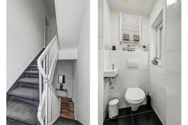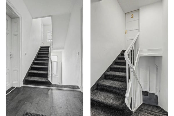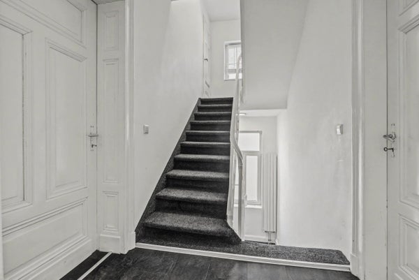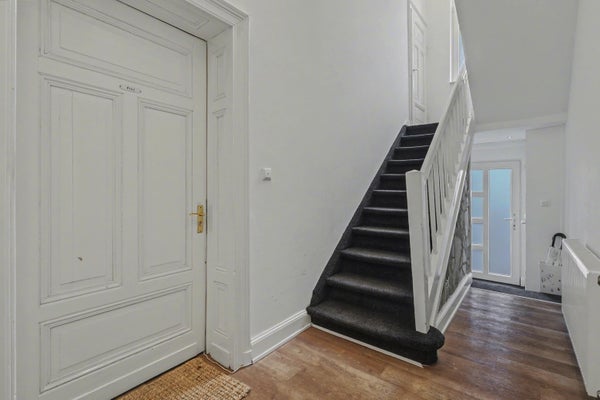 Riante ontvangsthal met vernieuwde meterkast en trapopgang