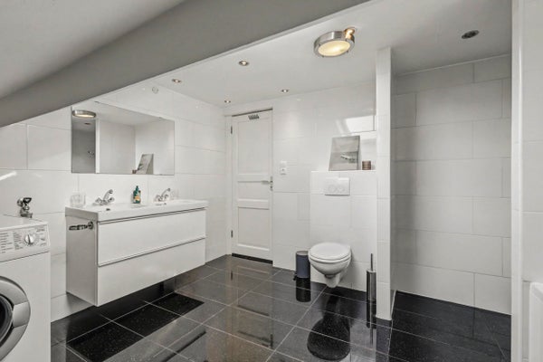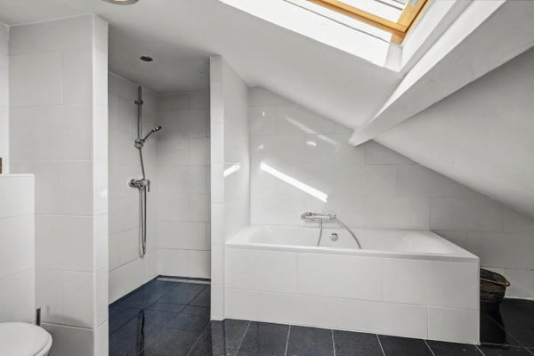 Badkamer II: ca. 3,62 x 3,59 m, voorzien van ligbad, inloopdouche, zwevend toilet, dubbele wastafel met meubel, inbouwspots en dakraam.