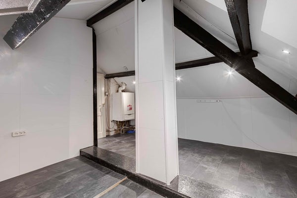 Via de vaste, eveneens opnieuw beklede trap bereiken we de tweede verdieping. Hier bevindt zich de ruime vierde slaapkamer met een oppervlakte van circa 20,6 m². De kamer is voorzien van praktische inbouwkasten en een dakkapel, wat zorgt voor extra ruimte en lichtinval. Tevens bevindt zich in deze ruimte de opstelplaats van de cv-ketel.