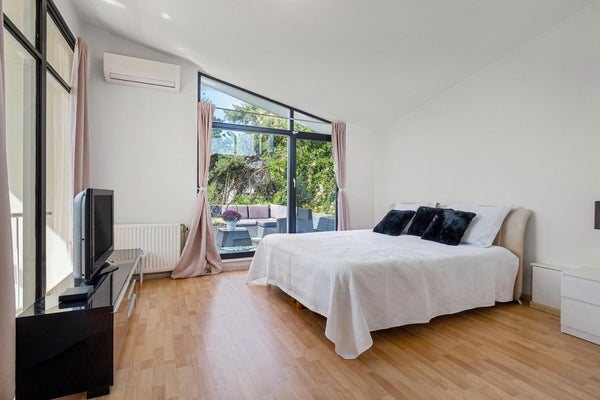 Deze woning beschikt over meerdere niveaus en heeft drie slaapkamers, twee badkamers, een royale tuin met overkapping, tuinhuis en garage. Op niveau -1 bevinden zich slaapkamers met toegang tot de tuin en een luxe badkamer. Het hoofdverdiep heeft een lichte woonkamer met open keuken, terwijl de master suite op niveau 1 een eigen dakterras biedt. Dit huis is perfect voor gezinnen die op zoek zijn naar ruimte en bereikbaarheid.