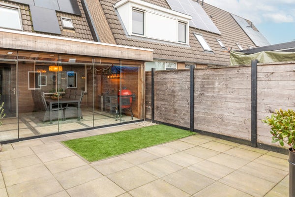 Een echte eyecatcher is de prachtige veranda, die ruim een jaar geleden aan de achterzijde van de woning is aangebouwd.
