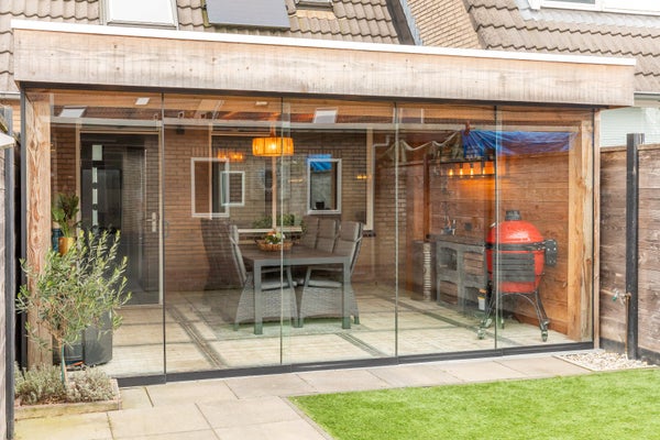 Met de glazen schuifwand creëer je hier het hele jaar door een heerlijke plek om te ontspannen.