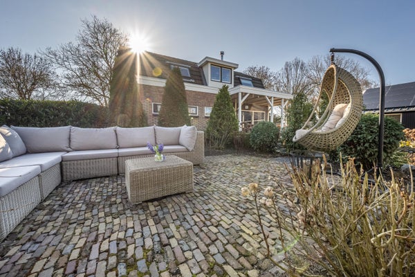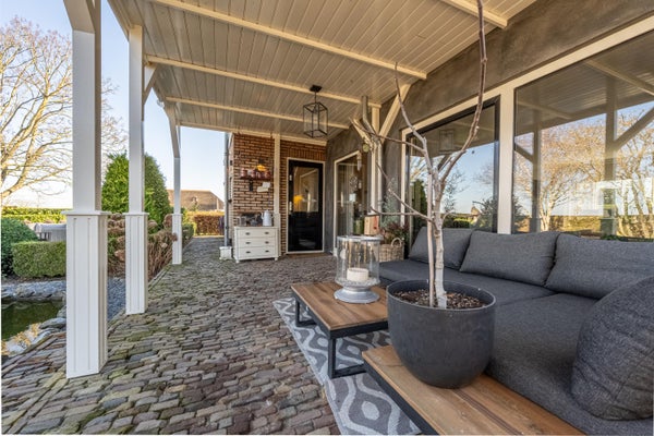 De tuin is volwassen en verzorgd, met meerdere zonneterrassen en een royale vijver. Of je nu plaatsneemt onder de veranda of ergens in de tuin zelf: er is altijd een plek waar je de rust en het uitzicht optimaal ervaart.