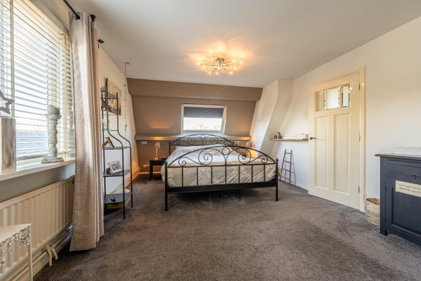 De lichte overloop geeft toegang tot drie goed bemeten slaapkamers. De hoofdslaapkamer is royaal en desgewenst op te delen in twee kamers. De overige slaapkamers zijn eveneens prettig van formaat, waarvan één beschikt over een meubel met stromend water.