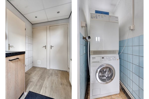 Aangrenzend vindt u een praktische kantoorruimte, ideaal voor thuiswerken en toegang tot de grote, droge kelder voor extra opslag. De bijkeuken biedt plaats aan uw witgoed en de cv-ketel.