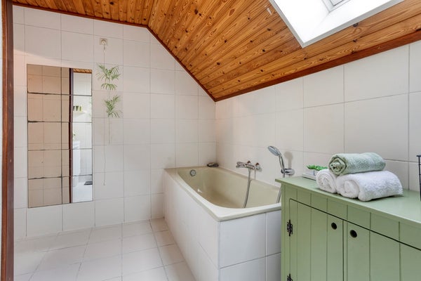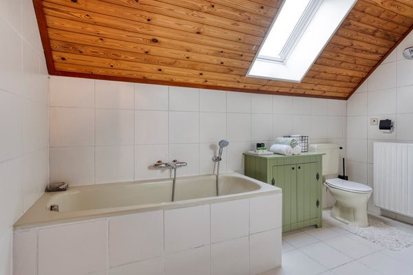 De eerste verdieping beschikt over drie ruime slaapkamers en een complete badkamer met ligbad, douche, toilet en wastafelmeubel. Het dakraam is recent vernieuwd (3 jaar oud). Via een vlizotrap bereikt u de ruime bergzolder op de tweede verdieping.