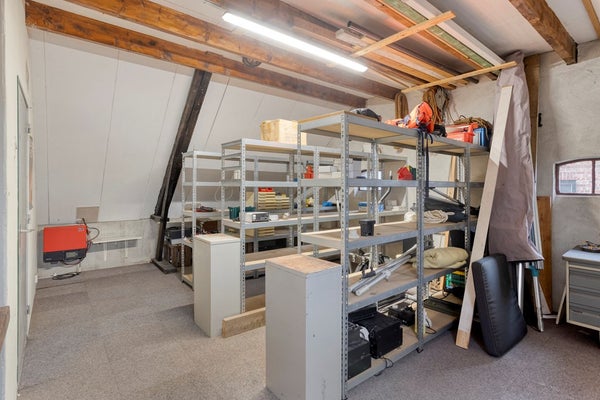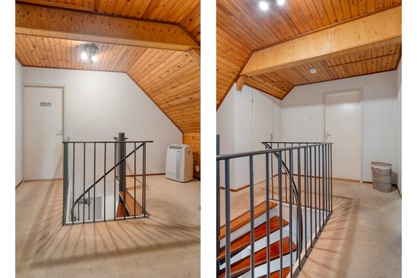 De woning heeft een ruime garage met een eigen groepenkast, een gewelfde kelder én een grote bergzolder, bereikbaar via een vaste trap.