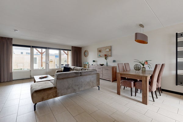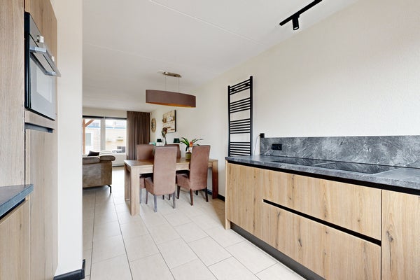Deze instapklare eindwoning biedt veel ruimte met een totale woonoppervlakte van 123 vierkante meter. Op de begane grond vindt u een ruime woonkamer, die door de uitbouw aan de achterzijde nog meerlucht heeft gekregen, en een luxe keuken met inductiekookplaat en vaatwasser. Het stijlvolle afwerkingsniveau en de vloerverwarming zorgen voor comfort. Boven zijn er vier slaapkamers en een vernieuwde luxe badkamer met ligbad en inloopdouche. De tuin is onderhoudsvriendelijk met een gezellige overkapping voor buitenvermaak en een schuur met elektra. De woning is centraal gelegen in een rustige wijk, dicht bij het levendige centrum. Met in totaal vijf kamers en voldoende opbergruimte is deze woning een ideaal gezinshuis.