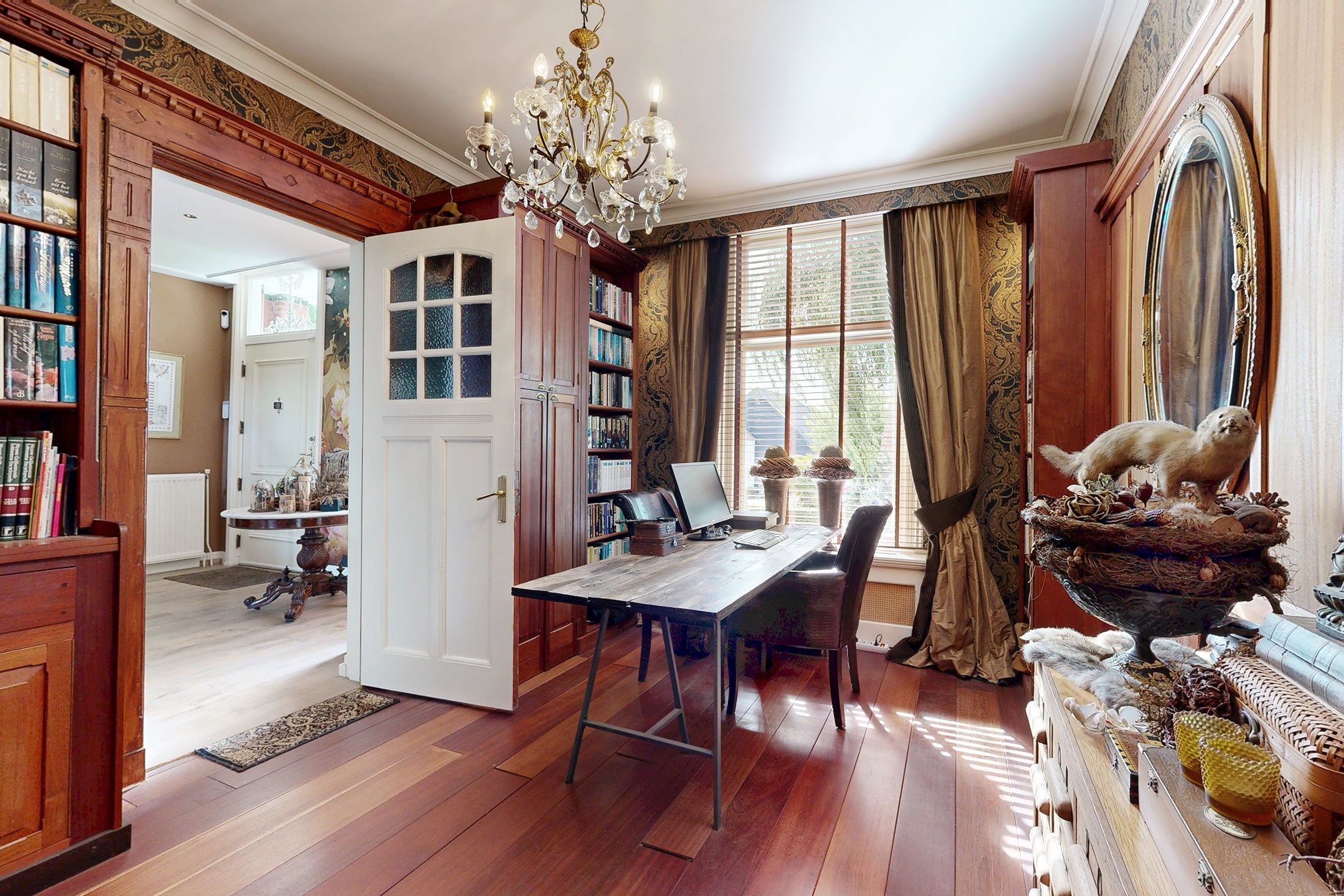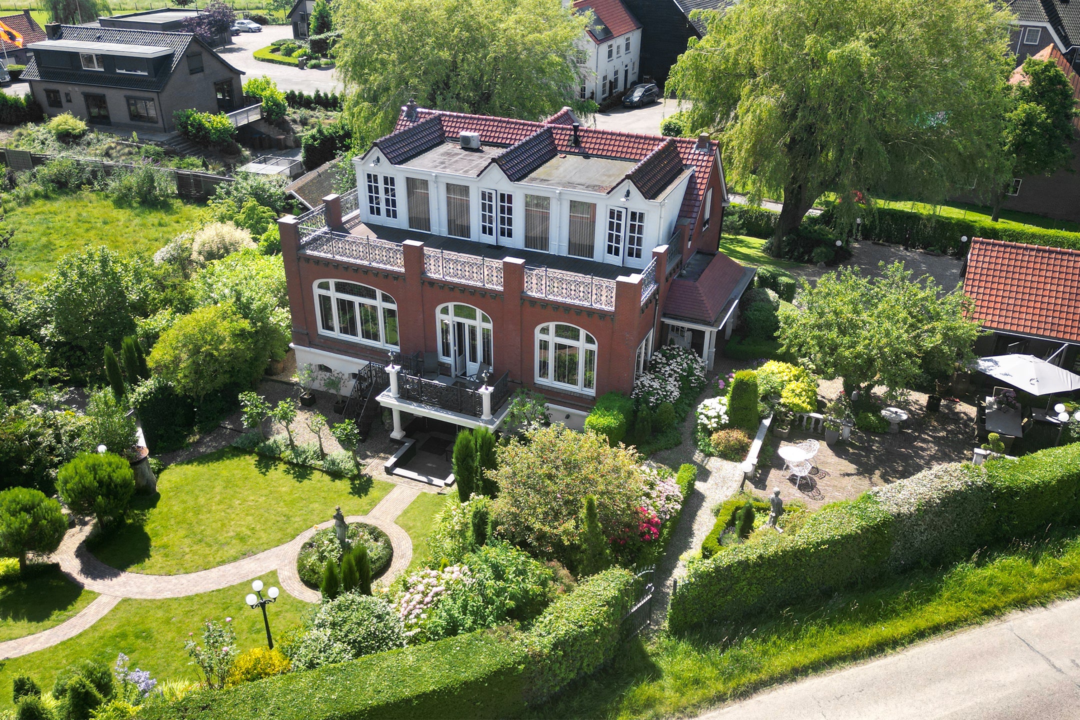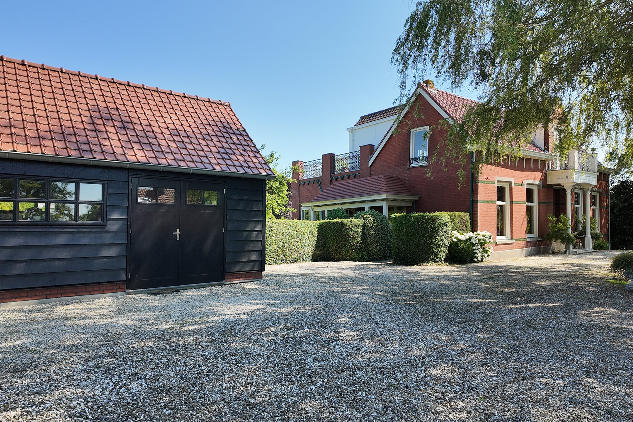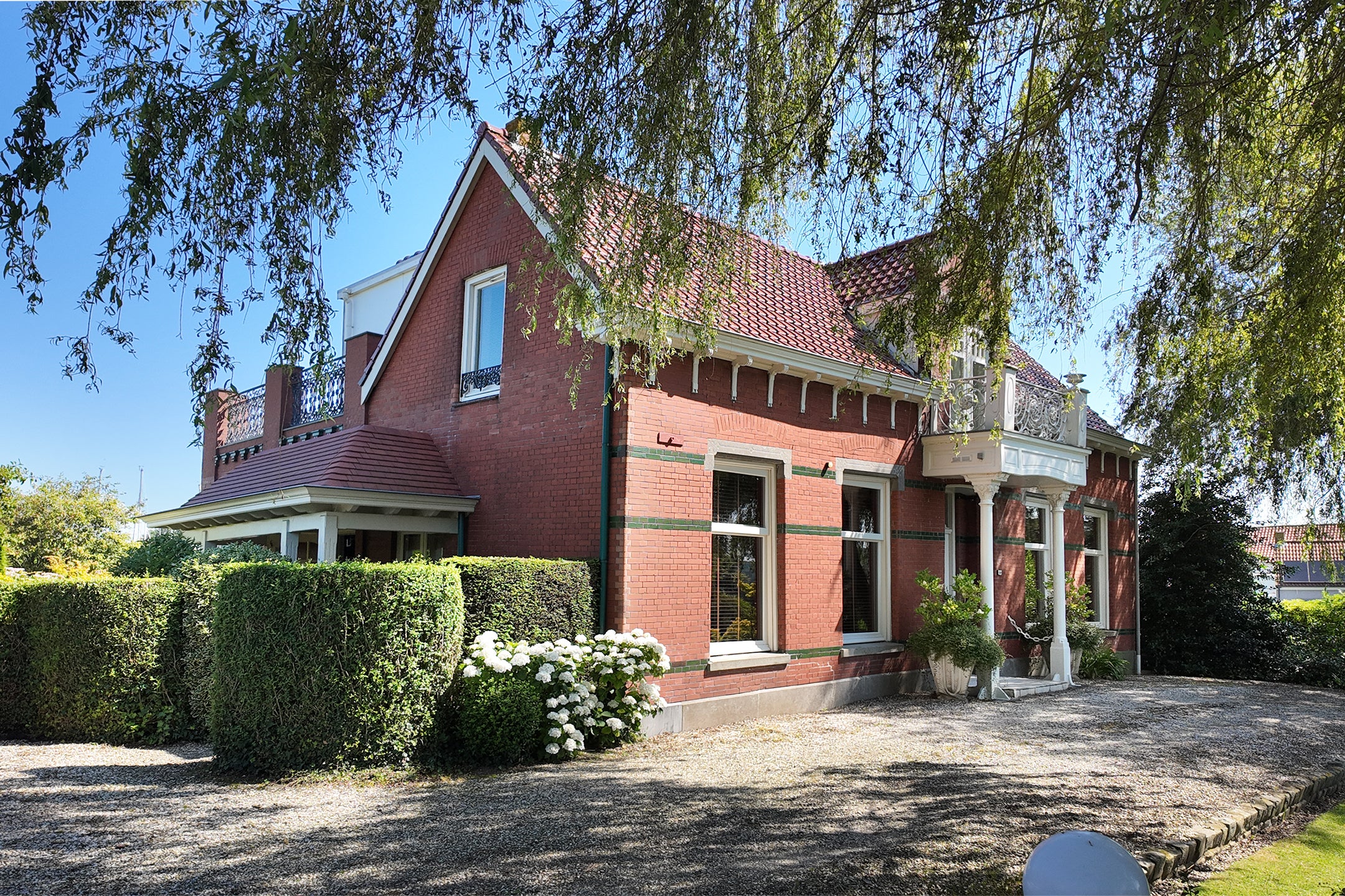 In het landelijke gebied van Klundert, dichtbij het dorp Noordschans, staat een bijzondere vrijstaande villa. Deze woning, recent met aandacht gerenoveerd, behoudt charme met originele details zoals glas-in-loodramen en marmeren schouwen. De unieke ligging tussen water en natuur biedt rust, met een prachtig dakterras en een mooi aangelegde tuin, waar een dierenverblijf aanwezig is. Binnen vind je een statige hal die leidt naar een woonkamer met en-suite kamers. De moderne leefkeuken is ideaal voor kookliefhebbers. De eerste verdieping heeft een master bedroom met badkamer en-suite, daarnaast nog een grote slaapkamer met eigen badkamer. Het souterrain, compleet met open ruimtes en keukenblokken, biedt mogelijkheden voor gasten of dubbele bewoning. Er is voldoende parkeergelegenheid en een ruime schuur.