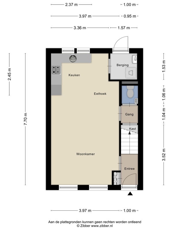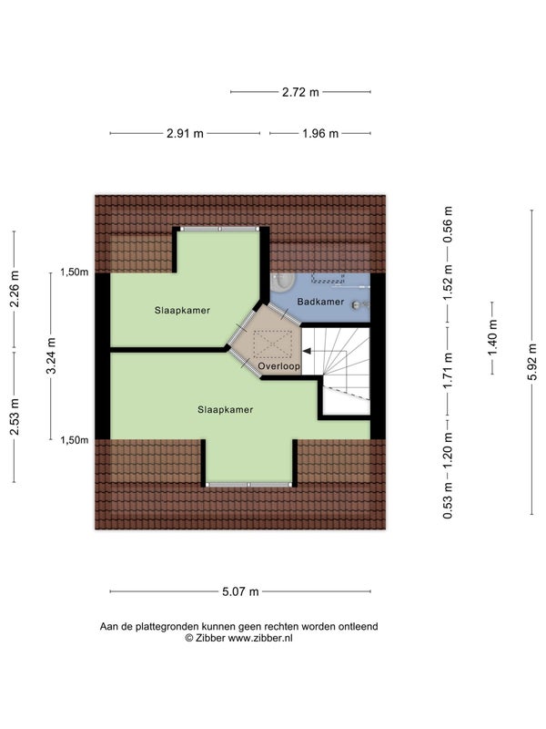 - De tussenwoning heeft een woonoppervlakte van 60 m² en beschikt over 3 kamers, waarvan 2 slaapkamers;