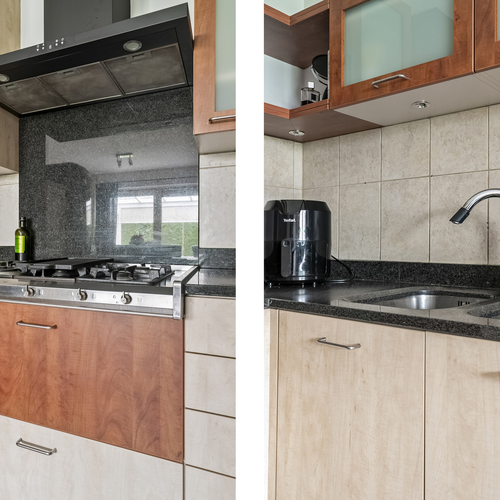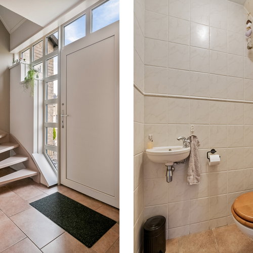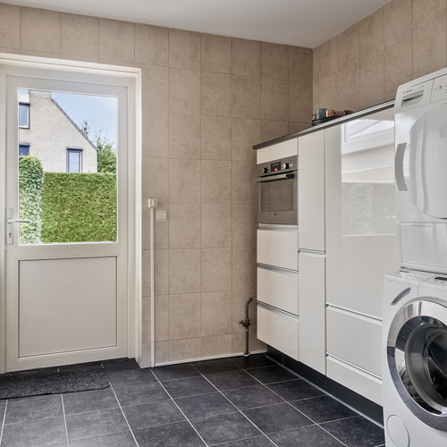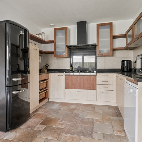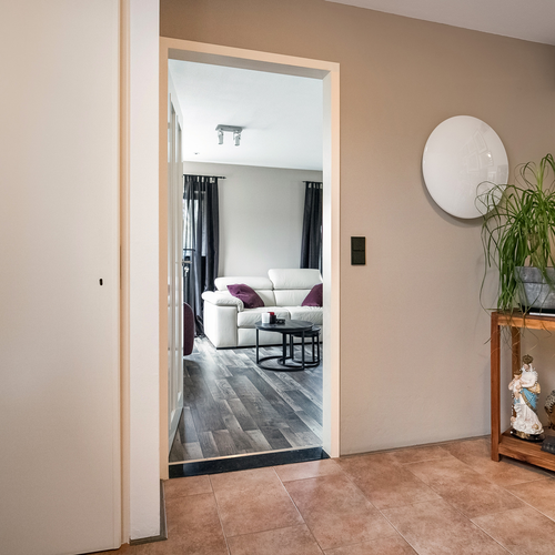 De ingang leidt naar een lichte woonkamer met grote ramen en een schuifpui naar de overkapping, ideaal voor ontspanning. De keuken is uitgerust met een 5-pits gasfornuis. Op de eerste verdieping vind je een royale badkamer met inloopdouche en vloerverwarming. De bergzolder is bereikbaar via een vlizotrap en biedt extra ruimte.