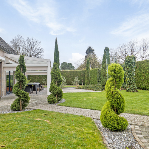 De tuin is fraai aangelegd en beschikt over een houten tuinhuis. Er is een dubbele oprit met parkeermogelijkheid voor twee auto’s. Verder zijn er 18 zonnepanelen en recente airco-units aanwezig.