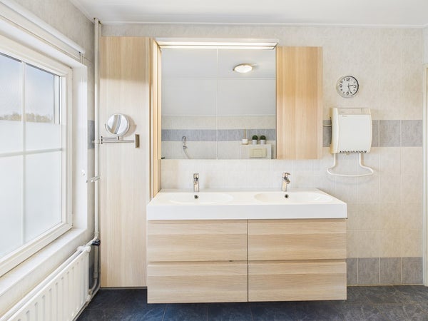 Op de eerste verdieping bevinden zich de overloop, drie ruime slaapkamers en een grote badkamer. Op één slaapkamer is airconditioning aanwezig. De badkamer is volledig betegeld en beschikt over een ligbad, douche, toilet en dubbele wastafel met meubel. Deze indeling maakt de woning geschikt voor zowel gezinnen als mensen die graag royaal en praktisch willen wonen, met volop mogelijkheden voor hobby’s, thuiswerken of logees.