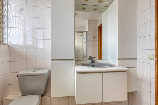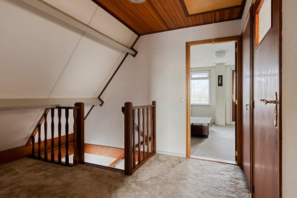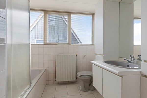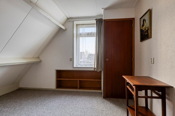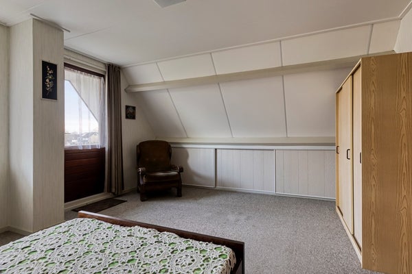 Overloop met vaste kast en aangrenzend de badkamer met ligbad, wastafelmeubel en toilet. Vanwege de aanwezige dakkapel kent de badkamer voldoende stahoogte. Verder zijn er op de verdieping 3 slaapkamers, waarvan één royale aan de voorzijde met deur naar groot balkon met uitzicht op de jachthaven! Een vlizotrap biedt vanaf de overloop toegang tot een grote bergzolder. Hier hangt de omvormer voor de 11 zonnepanelen.