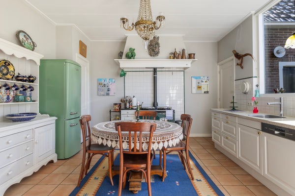 In het centrum van Kollum ligt deze karakteristieke vrijstaande woning, een voormalige pastorie met een rijke geschiedenis. De woning biedt een woonoppervlak van 232 m² en is omgeven door een prachtige tuin van 242 m² op het zuiden, ideaal voor liefhebbers van natuur en ruimte. Binnen is er een entree met marmeren vloer, een studeerkamer, een toilet en toegang tot de woonkamer en suite, die perfect zijn voor gezellige momenten. De woonkeuken van ± 18 m² is uitgerust met inbouwapparatuur. Op de eerste verdieping zijn er drie ruime slaapkamers, een badkamer met douche, toilet en bidet, en een wasruimte. De tweede verdieping omvat een extra slaapkamer van bijna 18 m². Dit herenhuis, gebouwd in 1885, heeft een perceel van ± 425 m², en is dichtbij winkels en voorzieningen, zoals scholen en sportfaciliteiten.