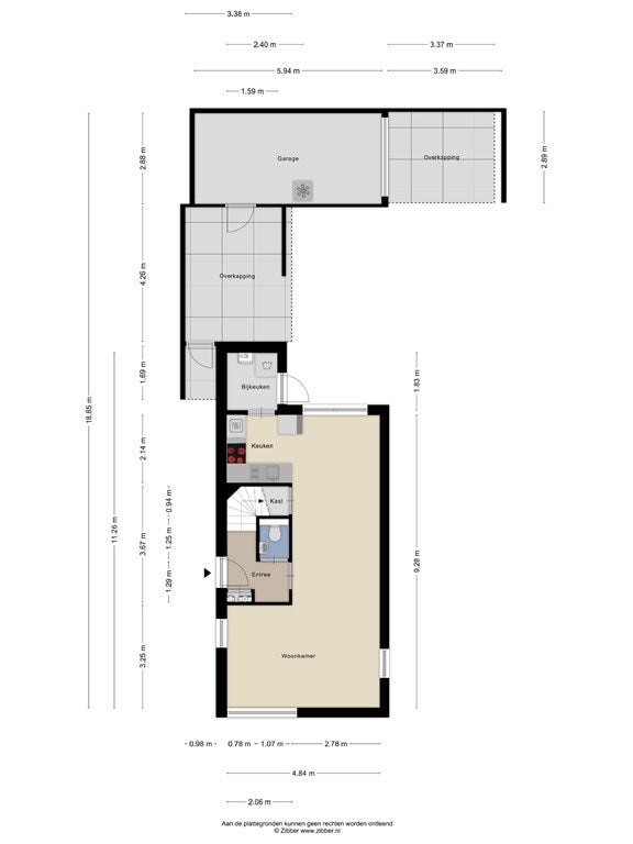 - Aanwezig (100 m², gelegen op het noorden)