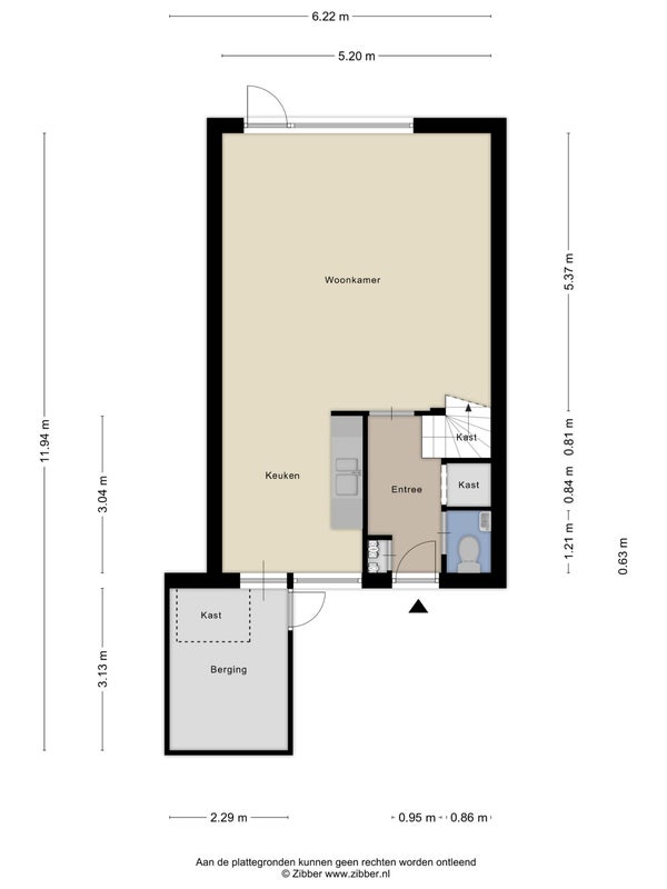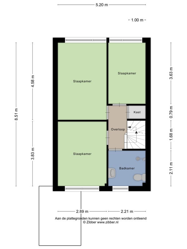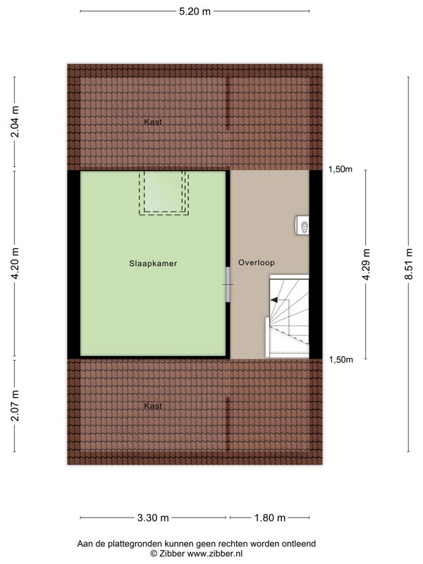 - Aanwezig (60 m², gelegen op het noordoosten)