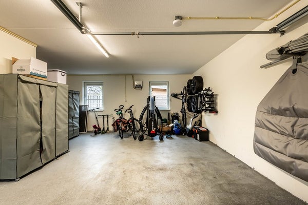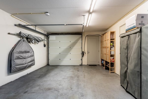 - Brede garage (41 m²) met elektrisch bedienbare roldeur en aparte loopdeur;