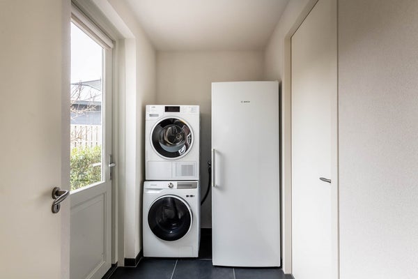 - Bijkeuken met aansluitingen voor de wasmachine en de droger;