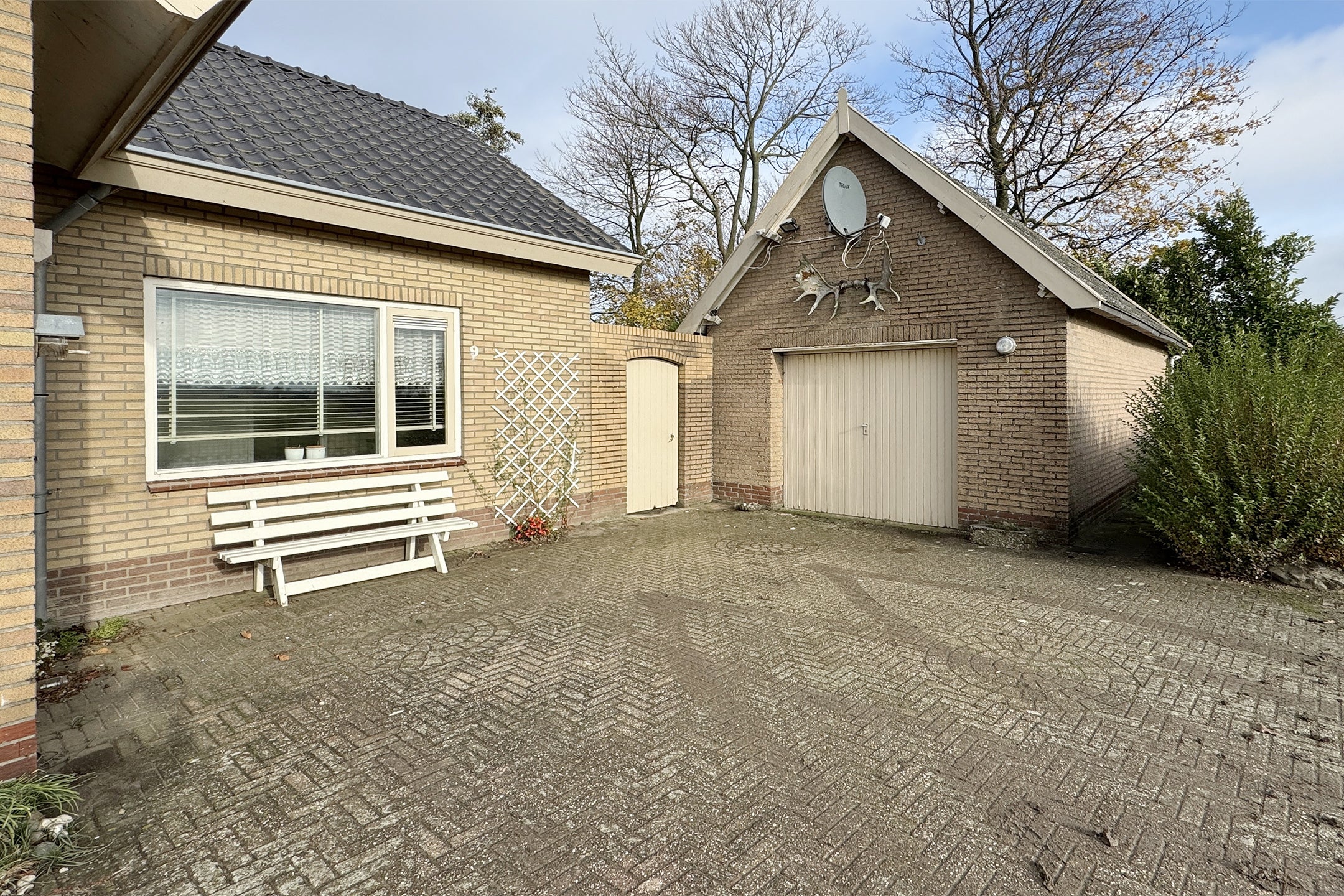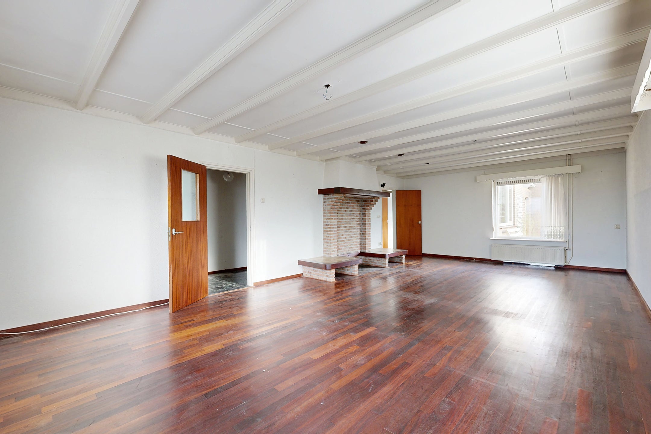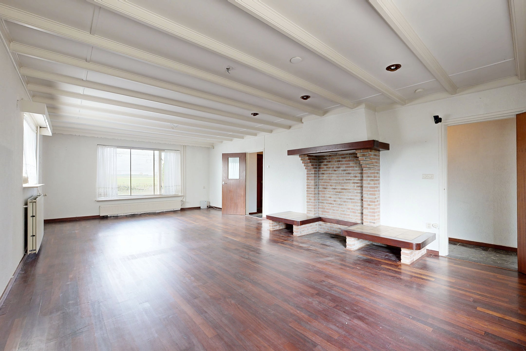 Deze vrijstaande woning met polderzicht biedt een rustige en ruime leefomgeving. De begane grond bevat een royale hal die toegang geeft tot de woonkamer, keuken, badkamer en twee slaapkamers, evenals een vaste trap naar de bovenverdieping. De woonkamer, met een open haard als middelpunt, heeft veel lichtinval en een charmante uitstraling door de houten balken en donkere vloer. De rechte keuken is van alle gemakken voorzien en leidt naar een handige bijkeuken.