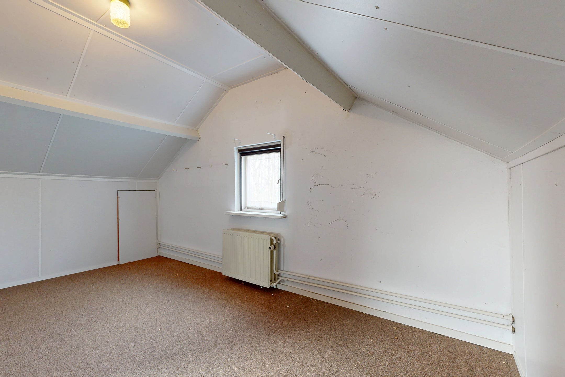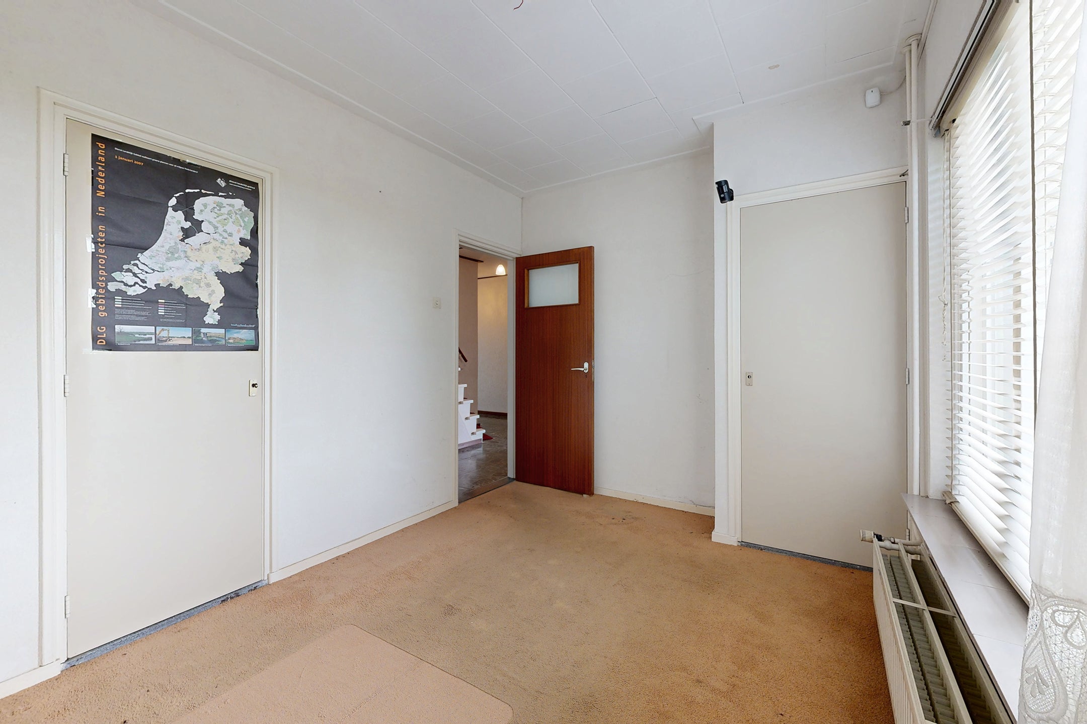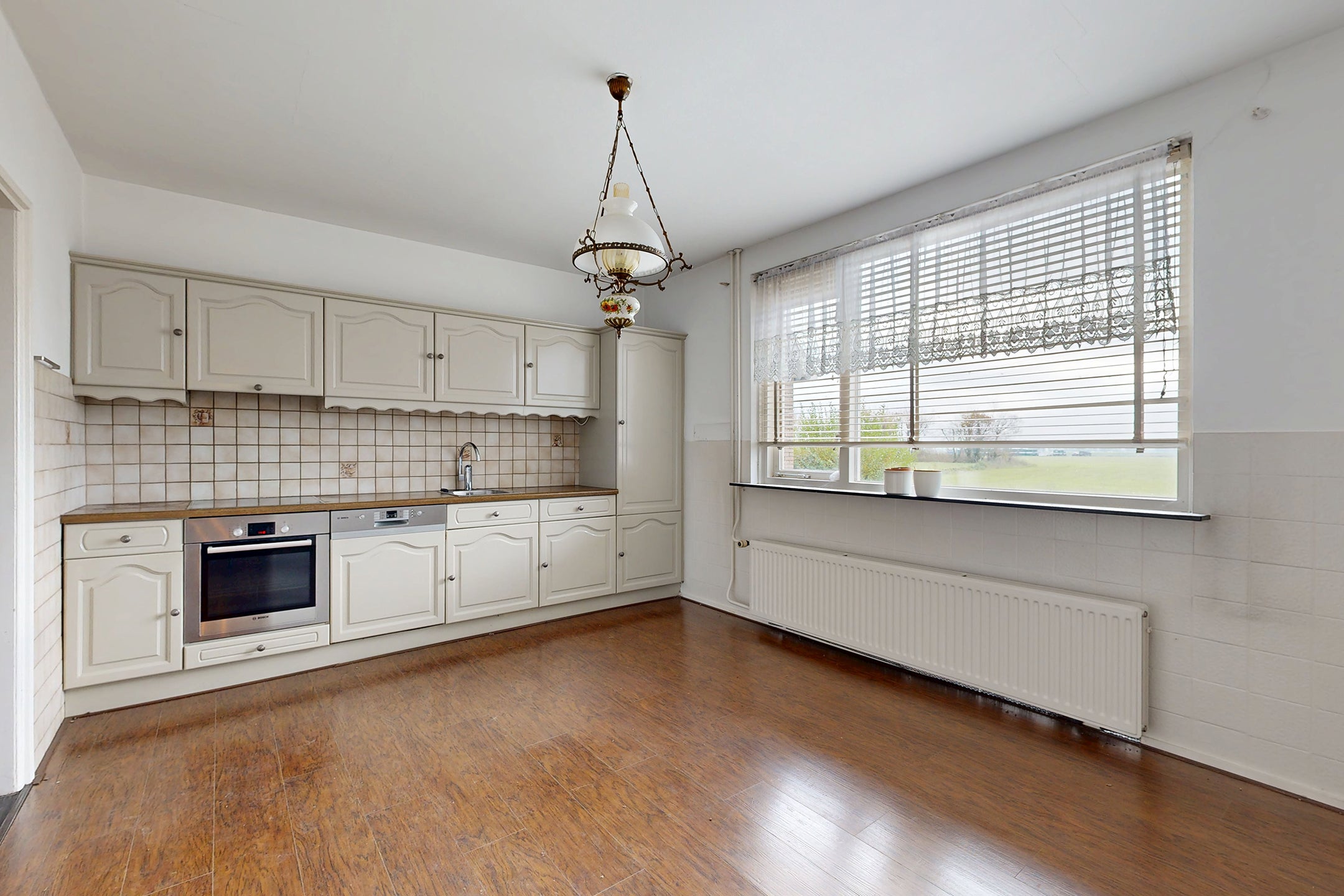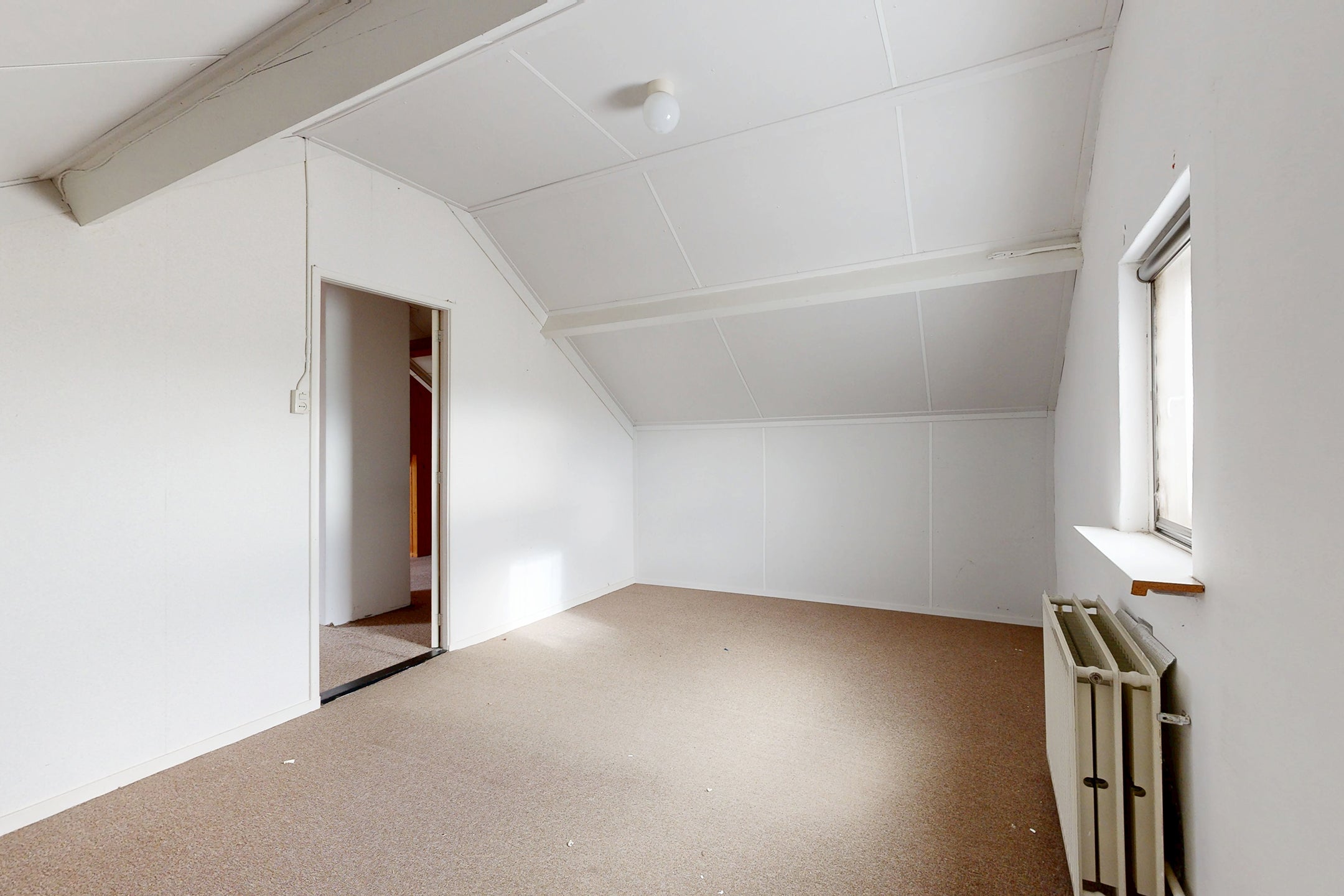 Deze vrijstaande woning met polderzicht biedt een rustige en ruime leefomgeving. De begane grond bevat een royale hal die toegang geeft tot de woonkamer, keuken, badkamer en twee slaapkamers, evenals een vaste trap naar de bovenverdieping. De woonkamer, met een open haard als middelpunt, heeft veel lichtinval en een charmante uitstraling door de houten balken en donkere vloer. De rechte keuken is van alle gemakken voorzien en leidt naar een handige bijkeuken.