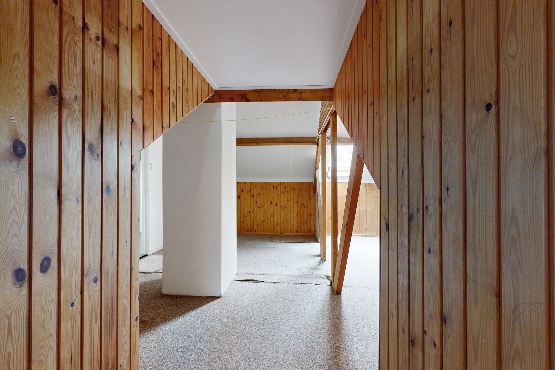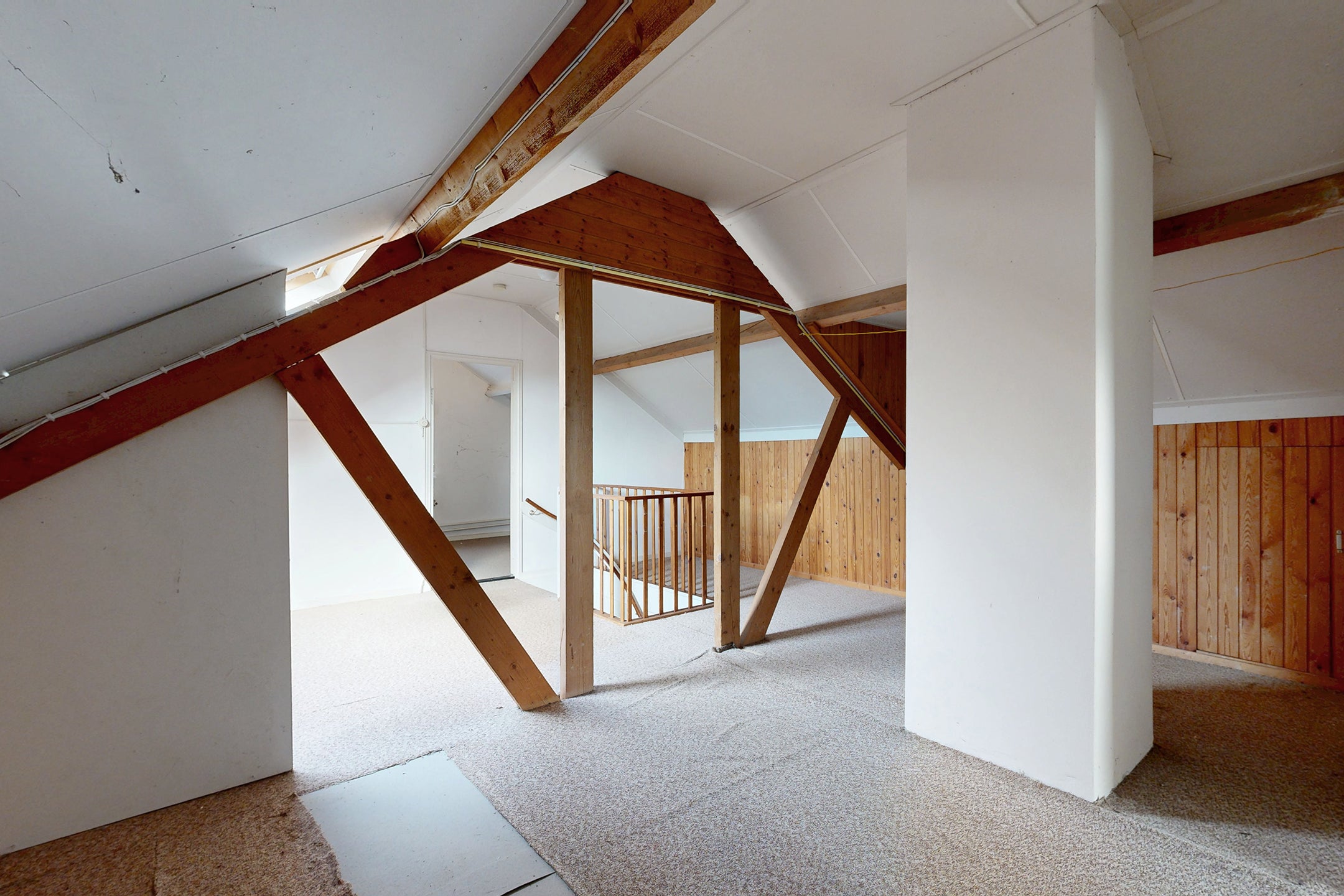 Op de eerste verdieping bevinden zich drie slaapkamers, ideaal voor gezin of gasten. De omliggende tuin, met een houten schuur, kan worden omgetoverd tot een sfeervolle buitenruimte. Dit huis, gebouwd in 1967, heeft een woonoppervlakte van 199 m² en staat op een perceel van 1331 m².