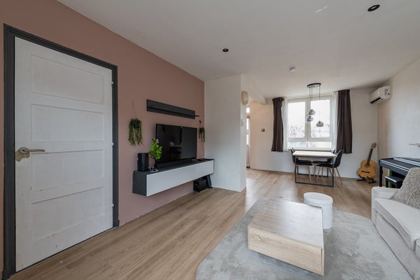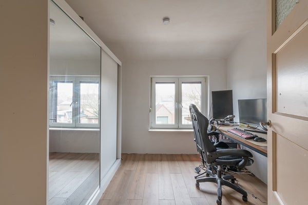 Ook hier is de vloer bekleed met laminaat en zijn de muren gestucd.